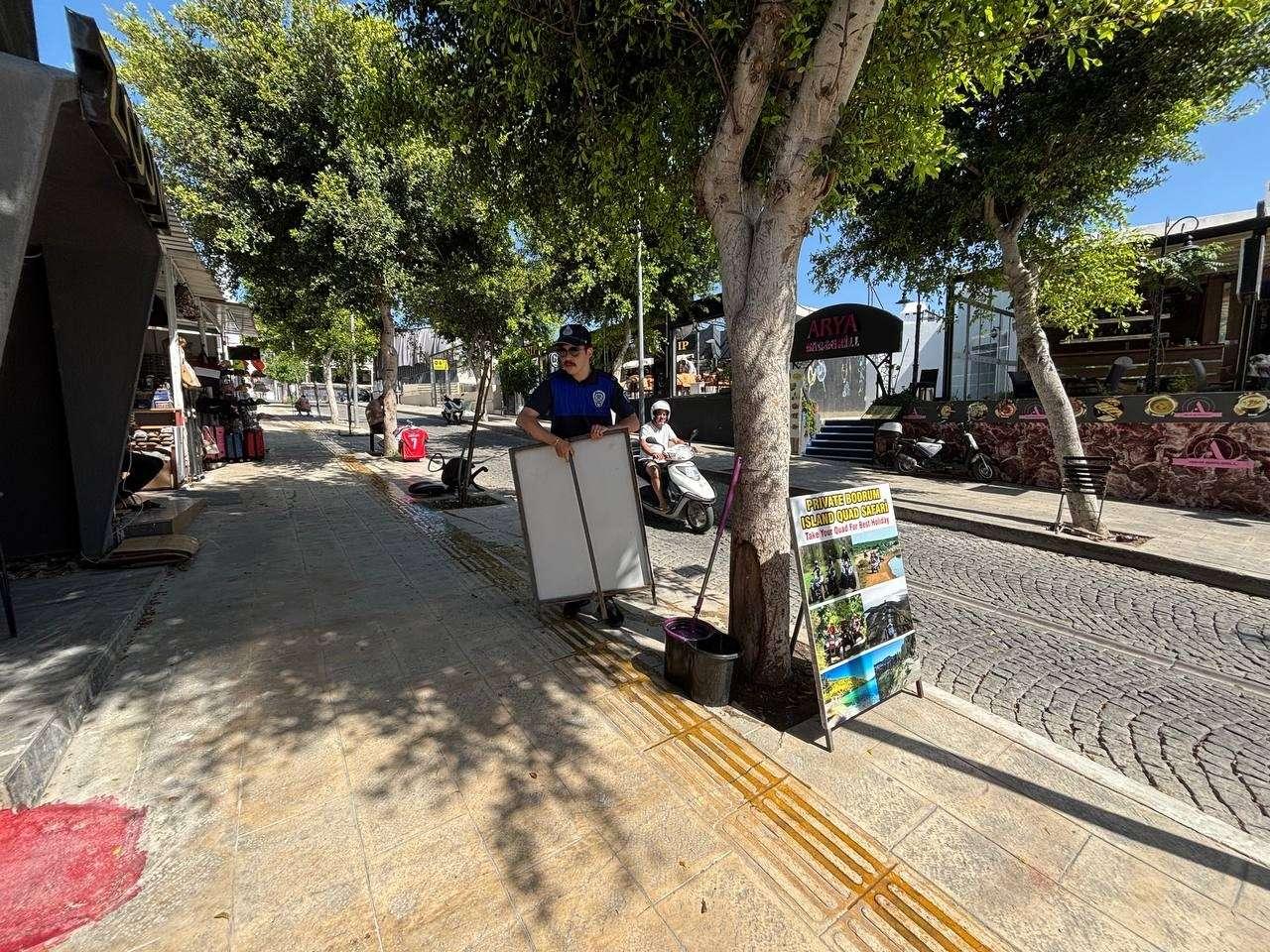 The municipal police teams, supported by the Municipal Finance Directorate and traffic officers, have been conducting frequent checks in areas such as Cumhuriyet Street (known as Bar Street), Kumbahçe, Neyzen Tevfik Street, Gümbet, Bitez, Yahşi, Müskebi, Turgutreis and Yalıkavak. shops occupying sidewalks without permits are being warned, and if non-compliance continues, fines are issued.