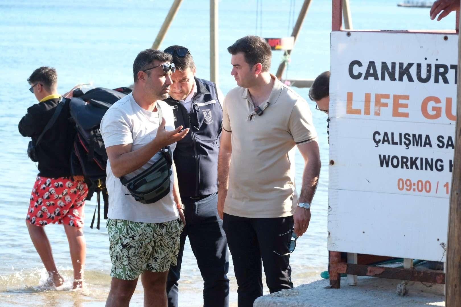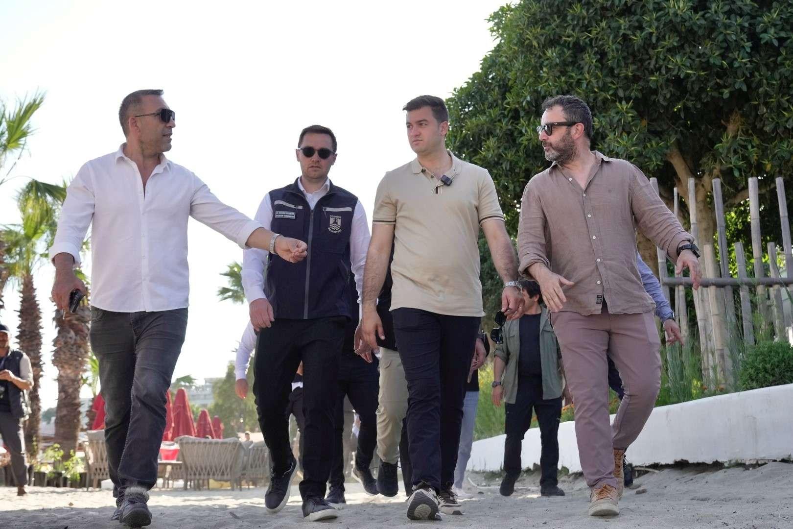 Accompanied by deputy mayors, municipal department heads, officials from the Metropolitan Municipality and MUSKI (the regional water and sewerage authority), and local stakeholders, Mayor Mandalinci began his tour on Ayaz Street and proceeded through Adnan Menderes Street, Yarbay Sabri Ergün Street and Plaj Street, including side streets and beachfront areas.