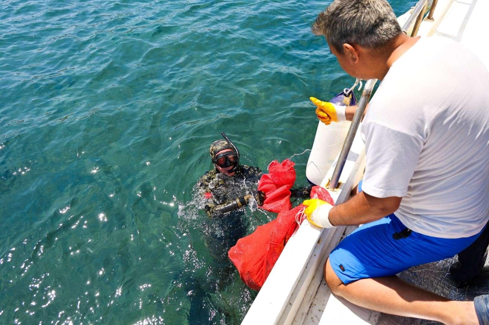 Now in its eleventh year, the campaign aims to protect Bodrum’s iconic turquoise waters and raise awareness about marine pollution. Organized by the Directorate of Support Services and the Department of Senitation Services, the event brought together a team of volunteer municipal divers who conducted an underwater cleanup operation along the Turgutreis coastline.