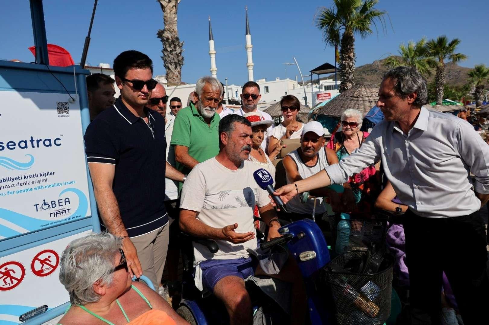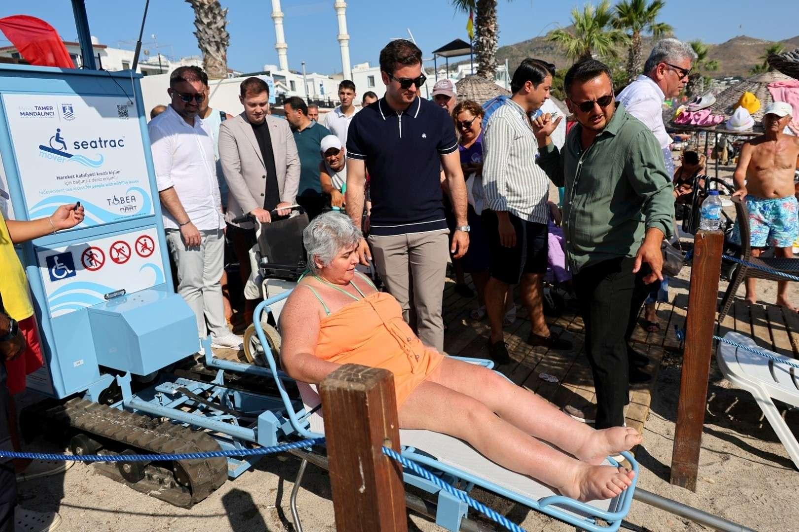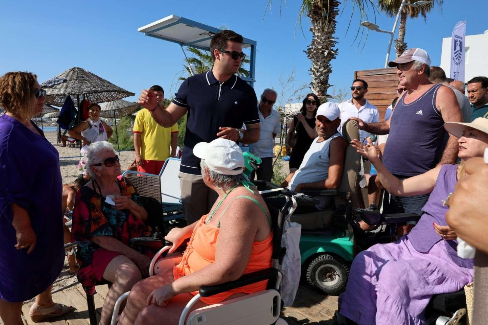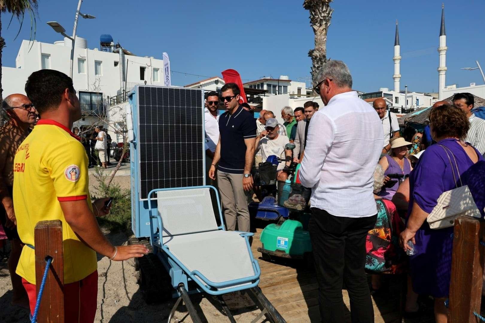 The newly implemented device, powered by solar energy, offers an autonomous and user-friendly experience, allowing users to move along a guided track directly into the water. The system's pilot launch was marked by a public demonstration attended by Mayor Tamer Mandalinci, deputy mayors, municipal council members, local headmen and citizens.