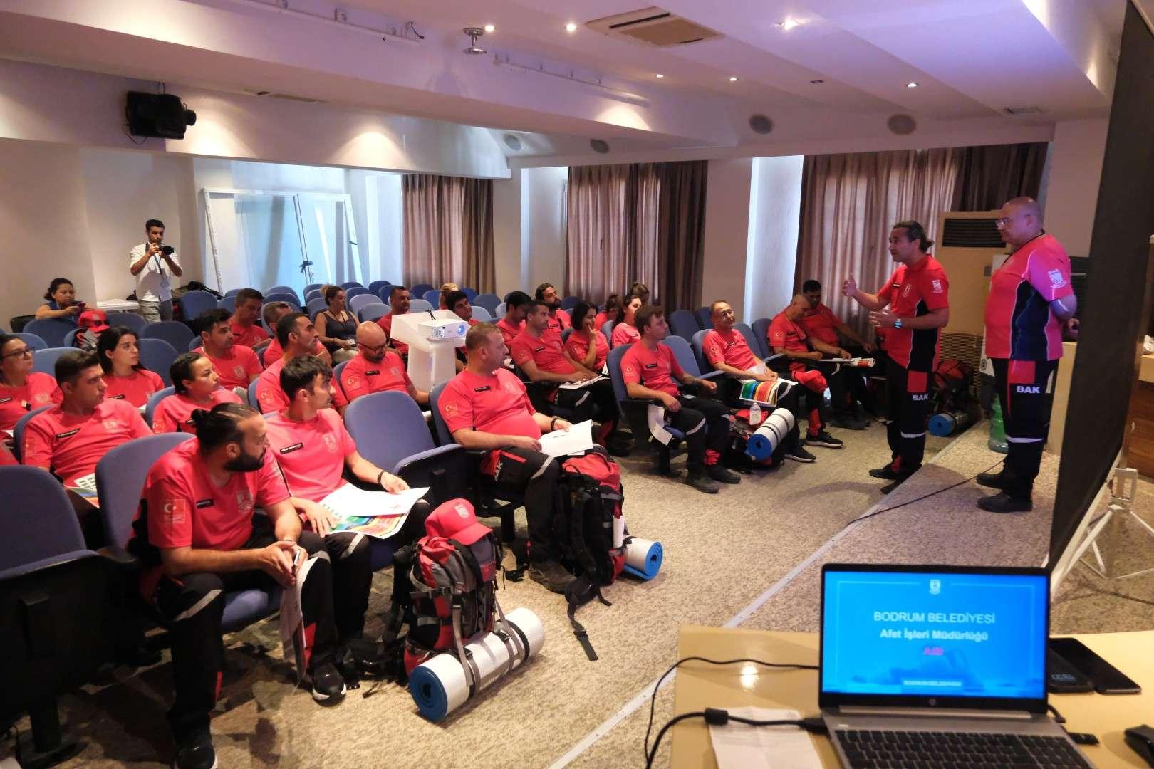 Bodrum Municipality’s Light Urban Search and Rescue Team (BAK – meaning “Bodrum Search and Rescue Team”) continues its intensive training sessions as it works toward official accreditation by AFAD. On June 25, the team gathered at the Yalıkavak Public Works Meeting Hall for the latest in a series of training programs led by the Disaster Affairs Directorate.