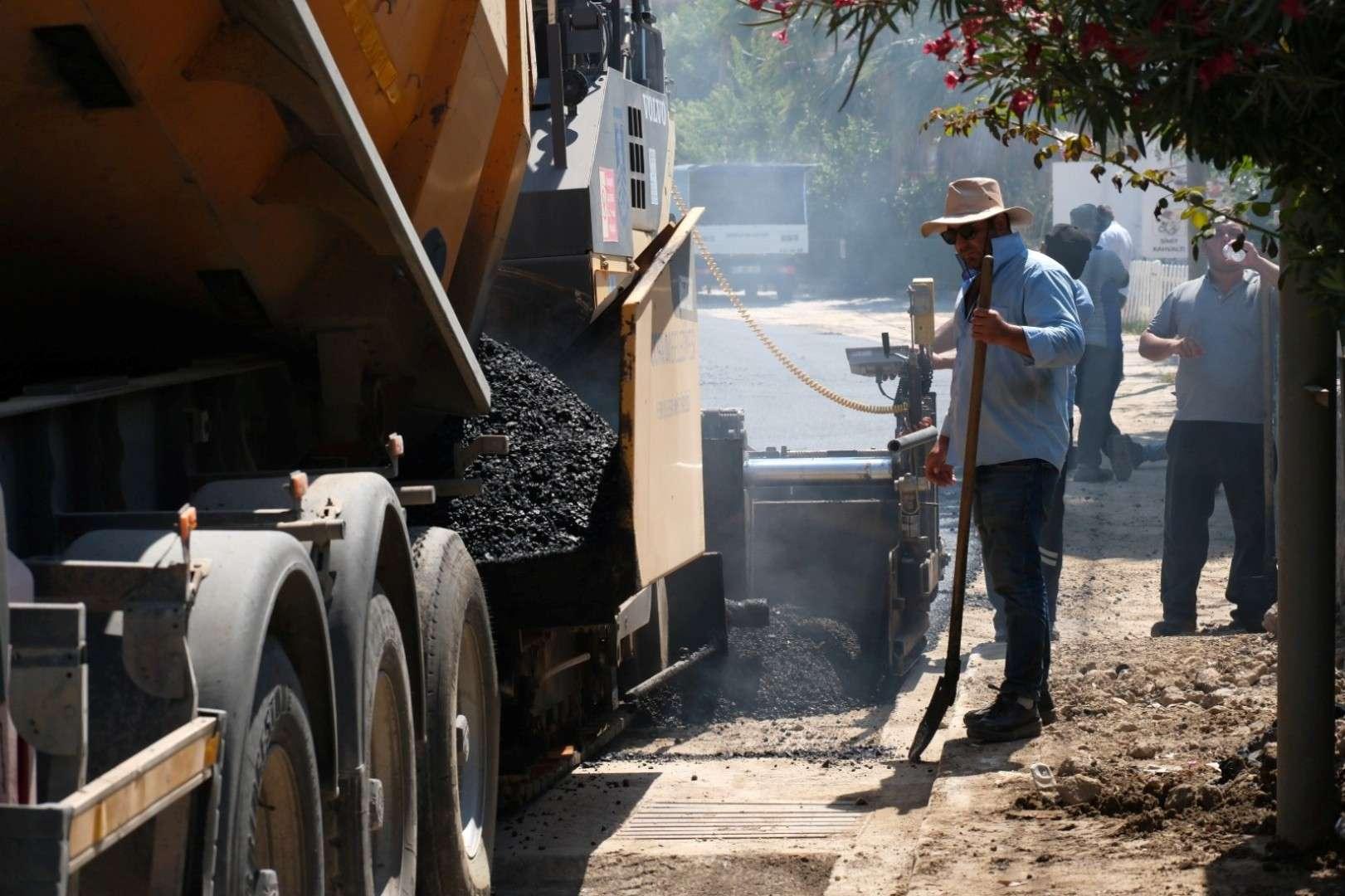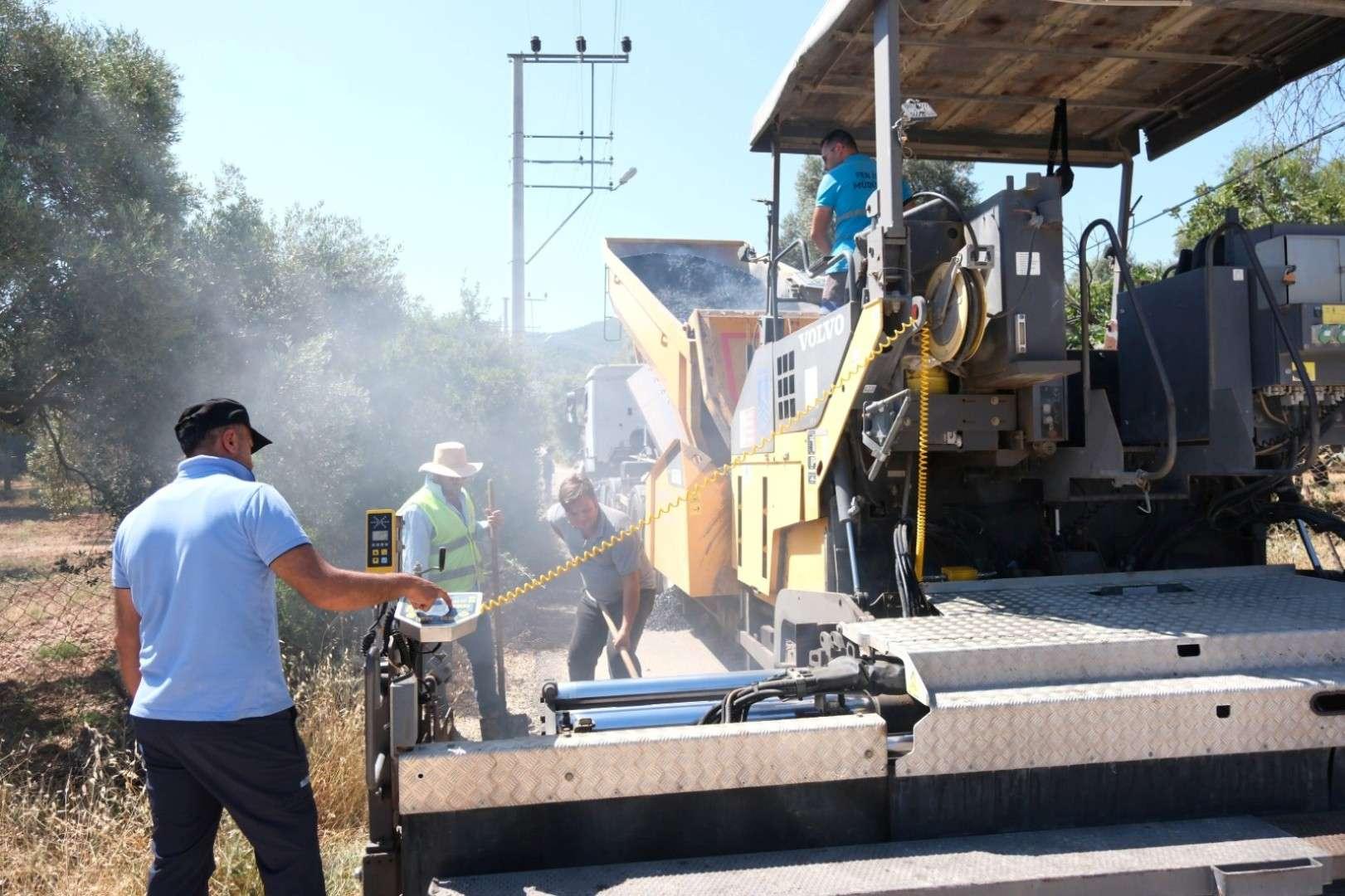 In Kızılağaç, Midilli Street was fully resurfaced and Danacılar Street was partially paved. In Gündoğan, following repairs to the drinking water lines by MUSKİ (Muğla Water & Sewerage Administration), hot asphalt was laid on Aşık Veysel Avenue using a finisher machine.