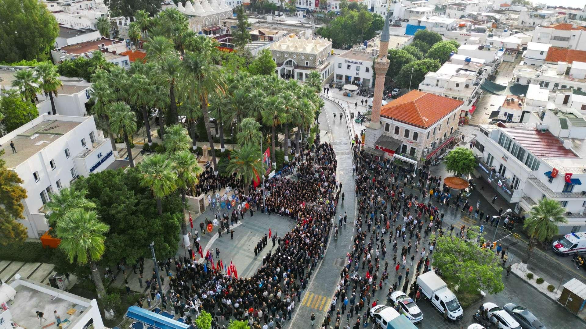 The official ceremony took place in Bodrum Municipality Square, where the event drew strong public participation. Attendees included District Governor Ali Sırmalı, Muğla MP Süreyya Öneş Derici, Garrison Commander Colonel Ayhan Ulutaş, Mayor Tamer Mandalinci, Deputy Chief Public Prosecutor Sezgin Kılıccı, representatives of public institutions, political parties, NGOs, municipal council members, veterans, students, teachers, municipal staff and citizens.