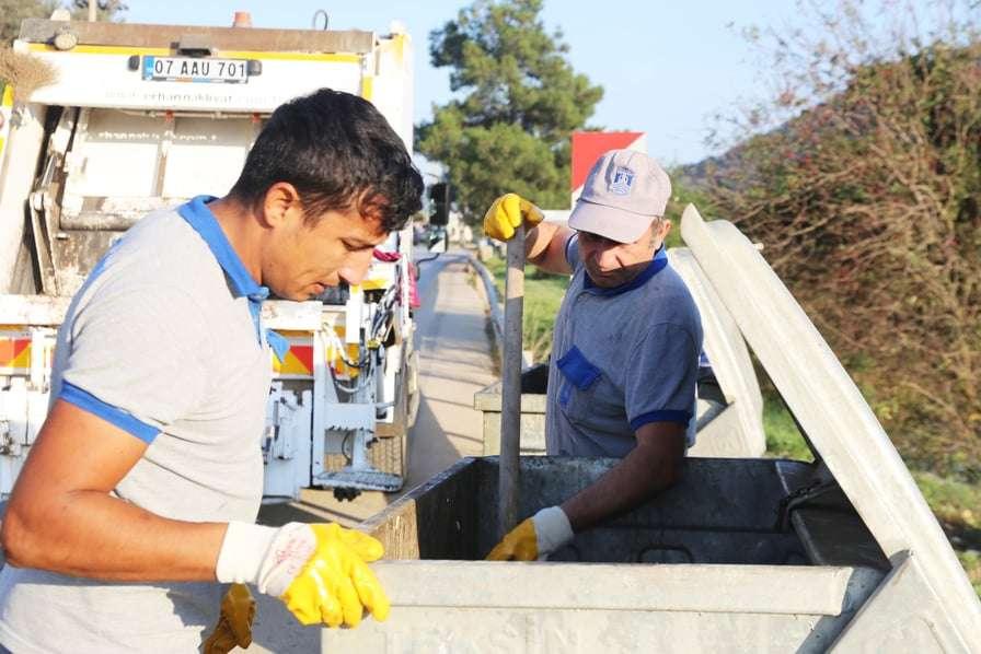 Garbage containers in Torba District, emptied by garbage trucks, were cleaned and disinfected using a container washing and disinfectant vehicle by the Environmental Protection & Control Directorate’s Cleaning Department.