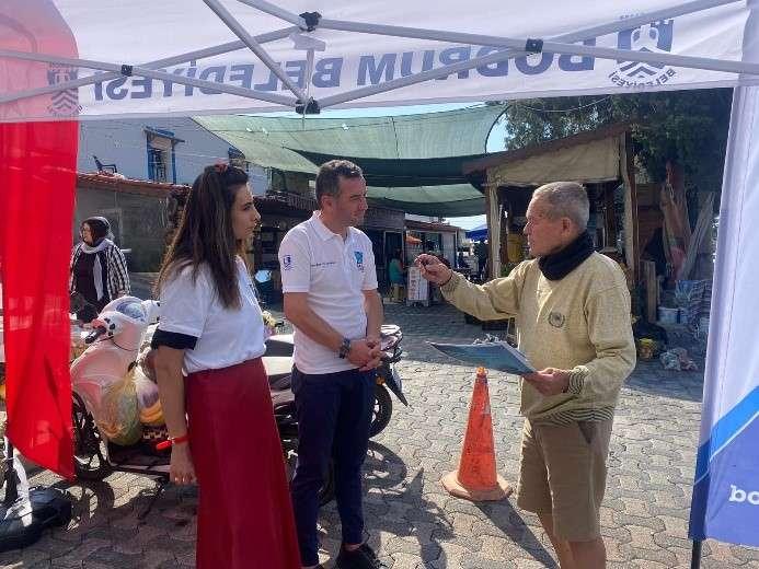 The tradesmen at Çarşı Neighborhood market were visited and the Field Solution and Coordination Team set up a stand to distribute brochures about Bodrum Municipality's activities and services, including the Halikarnas Newspaper, to the citizens. The team collected requests and complaints from the citizens at the market and directed them to the relevant departments. The Coordination Center is responsible for tracking these requests and complaints. During the visit to Çarşı Neighborhood Market, they interacted with 660 citizens, receiving a total of 33 requests. Additionally, the field solution team identified 3 negative situations on-site, making it a total of 36 requests and complaints forwarded to the relevant departments.