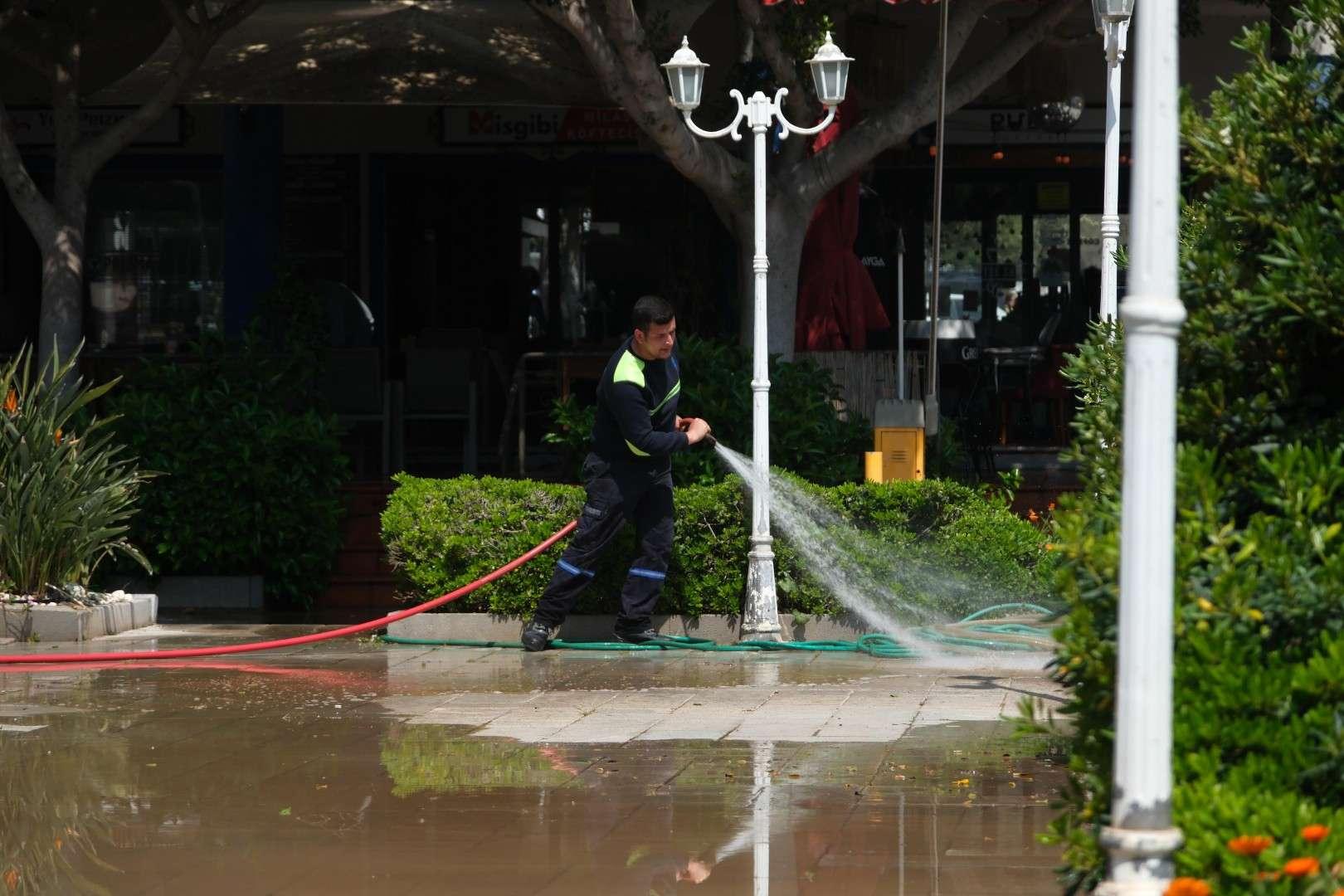 ekiplerimiz özellikle turistik bölgeler ve yoğun mahallelerde temizlik çalışmasını