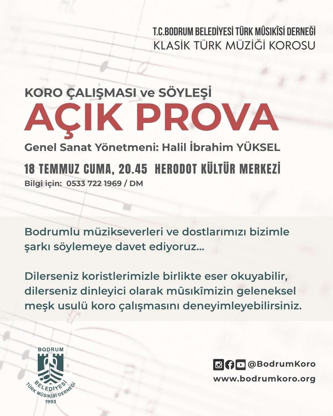 BODRUM BELEDİYESİ TÜRK MUSİKİSİ DERNEĞİNDEN BODRUMLU MÜZİKSEVERLERE DAVET
