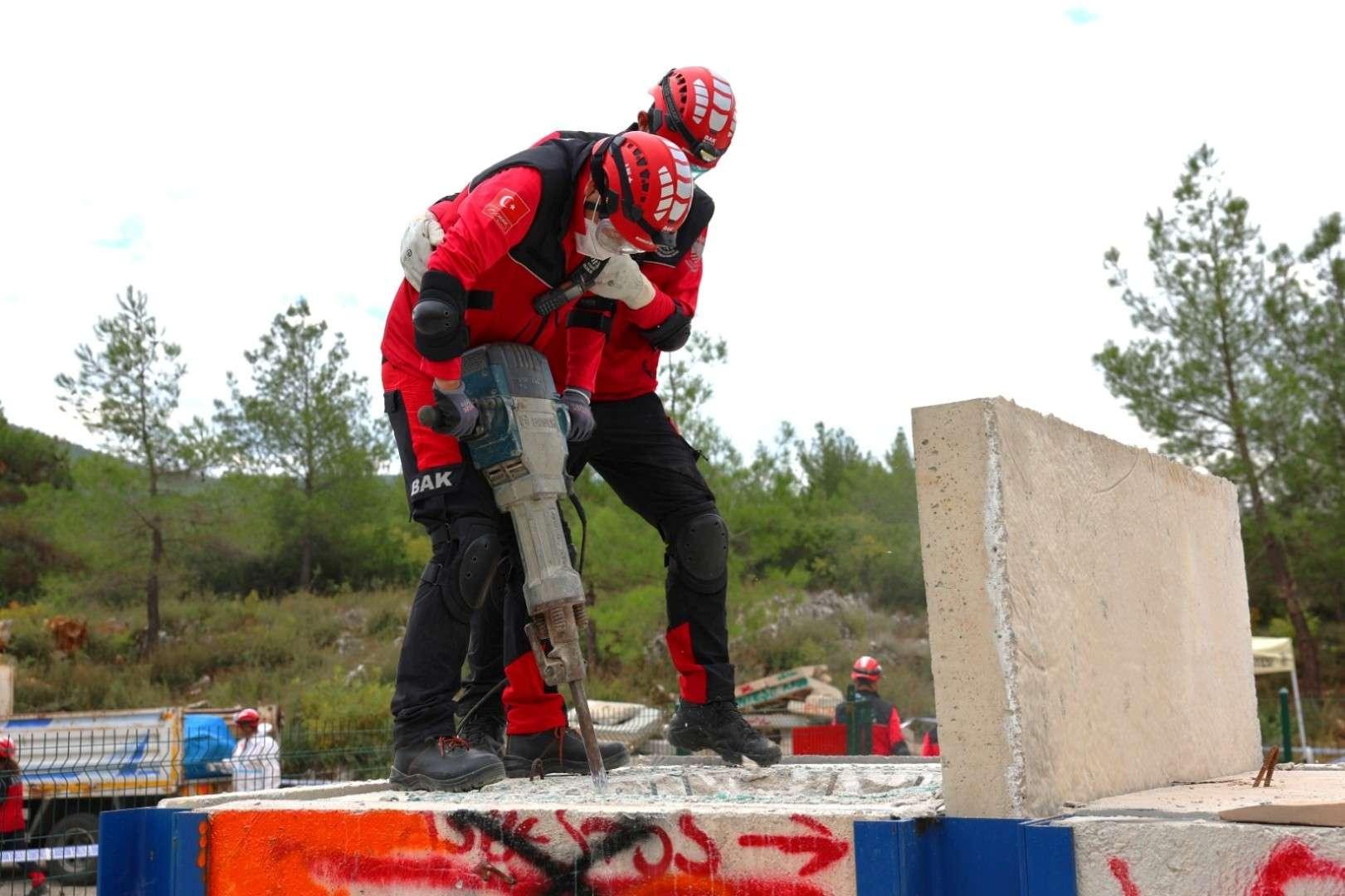 gözetiminde gerçekleştirilen uygulamalı eğitimlerde, olası afet durumlarına müdahale