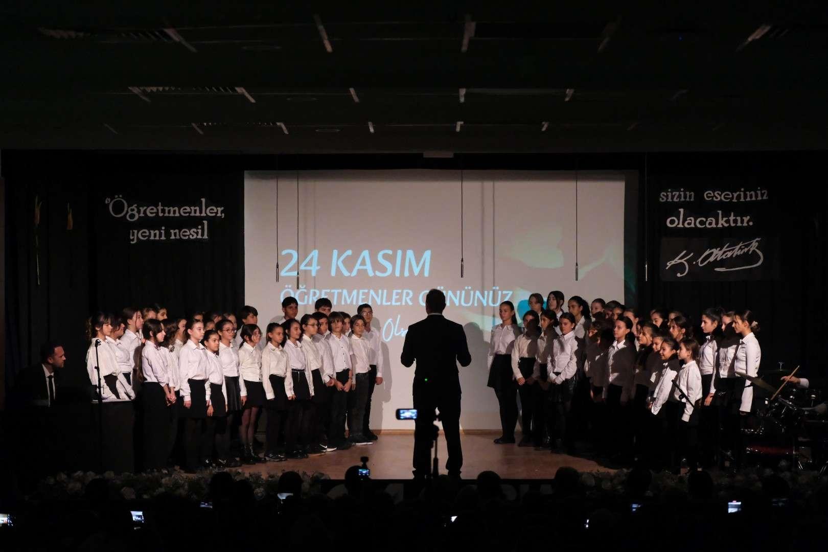 öğretmenlere saygı sunumu gerçekleştirildi. Sonrasında çok sesli koro,