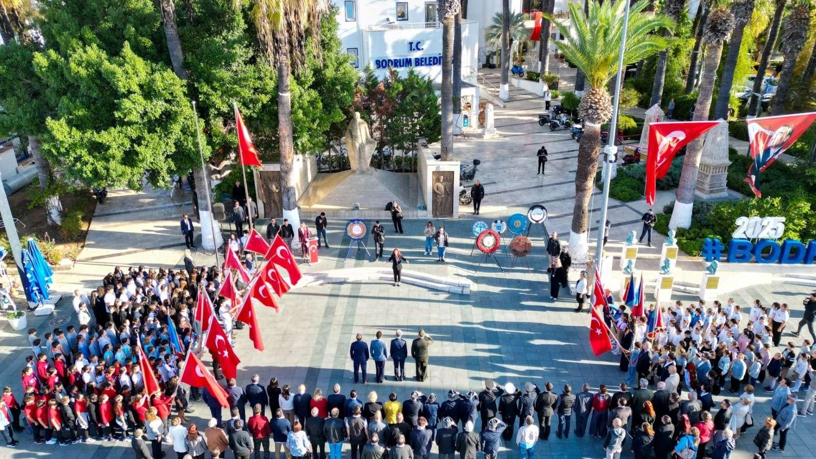 Bodrum Belediye Meydanı’nda Bodrum Kaymakamlığı tarafından çelenk sunma töreni