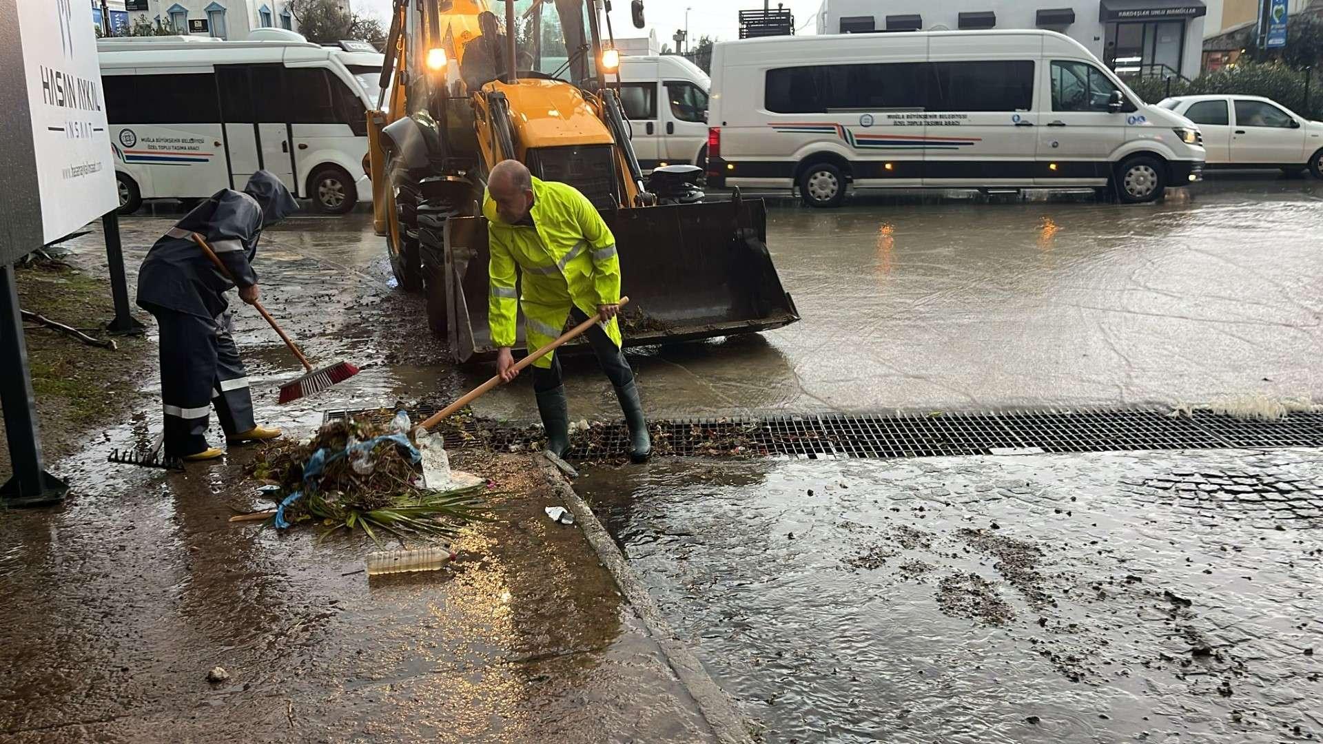 ardından teyakkuza geçen Bodrum Belediyesi, ilçe genelindeki şiddetli yağış ve