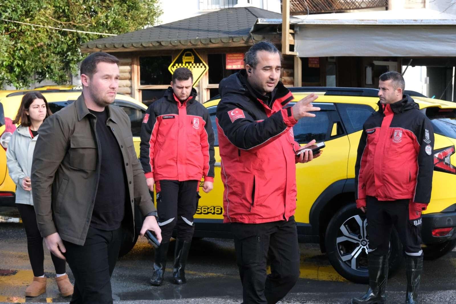 bölgede mahsur kalan iki araçtaki vatandaşlar, Afet İşleri ve Risk Yönetimi