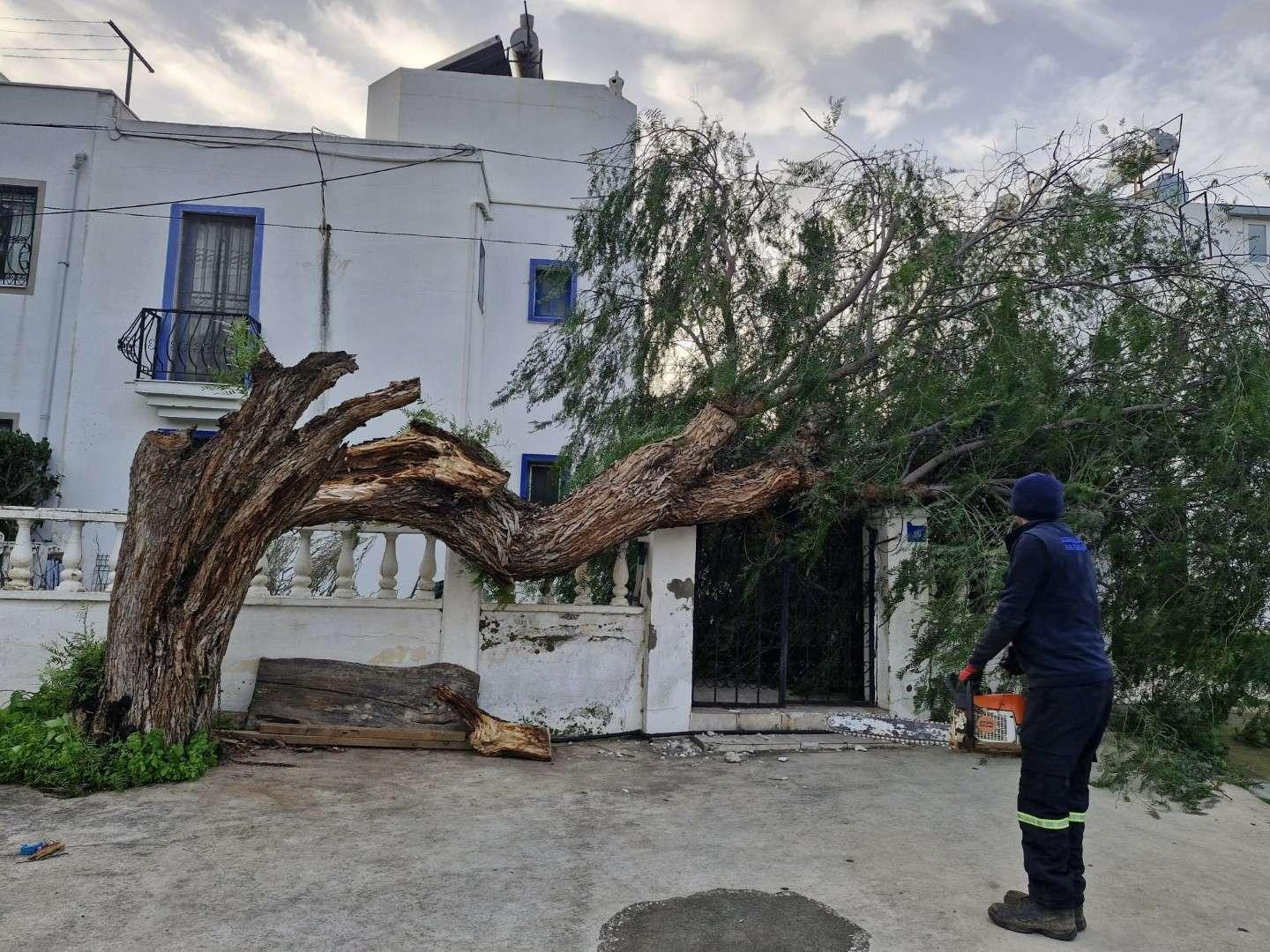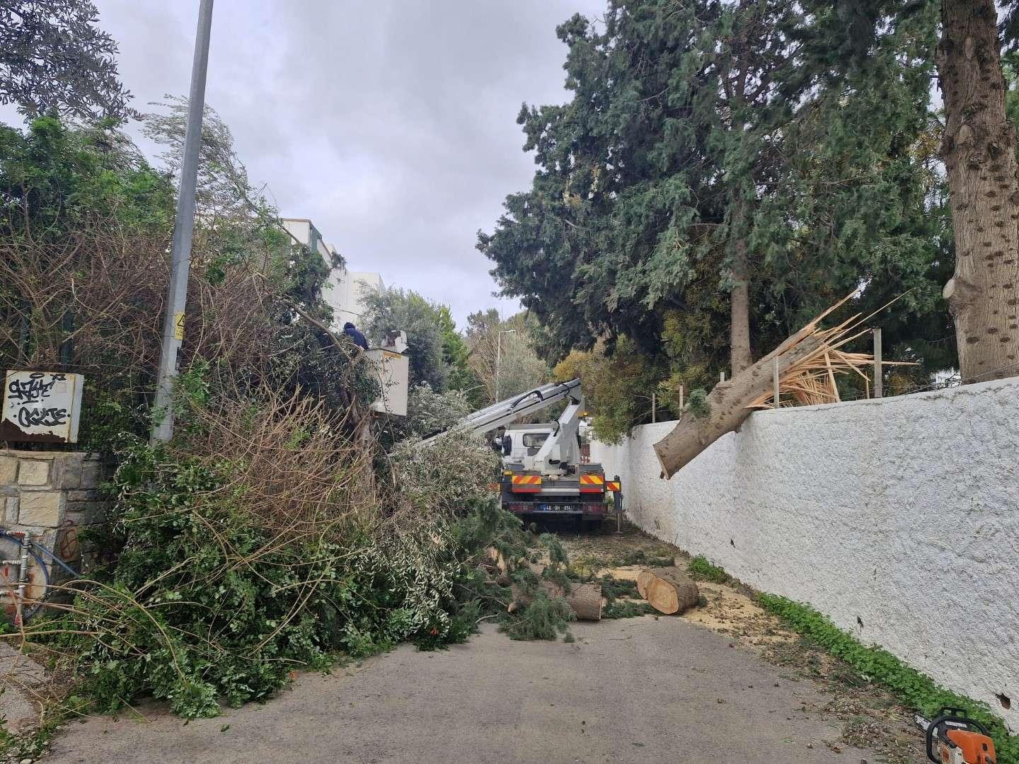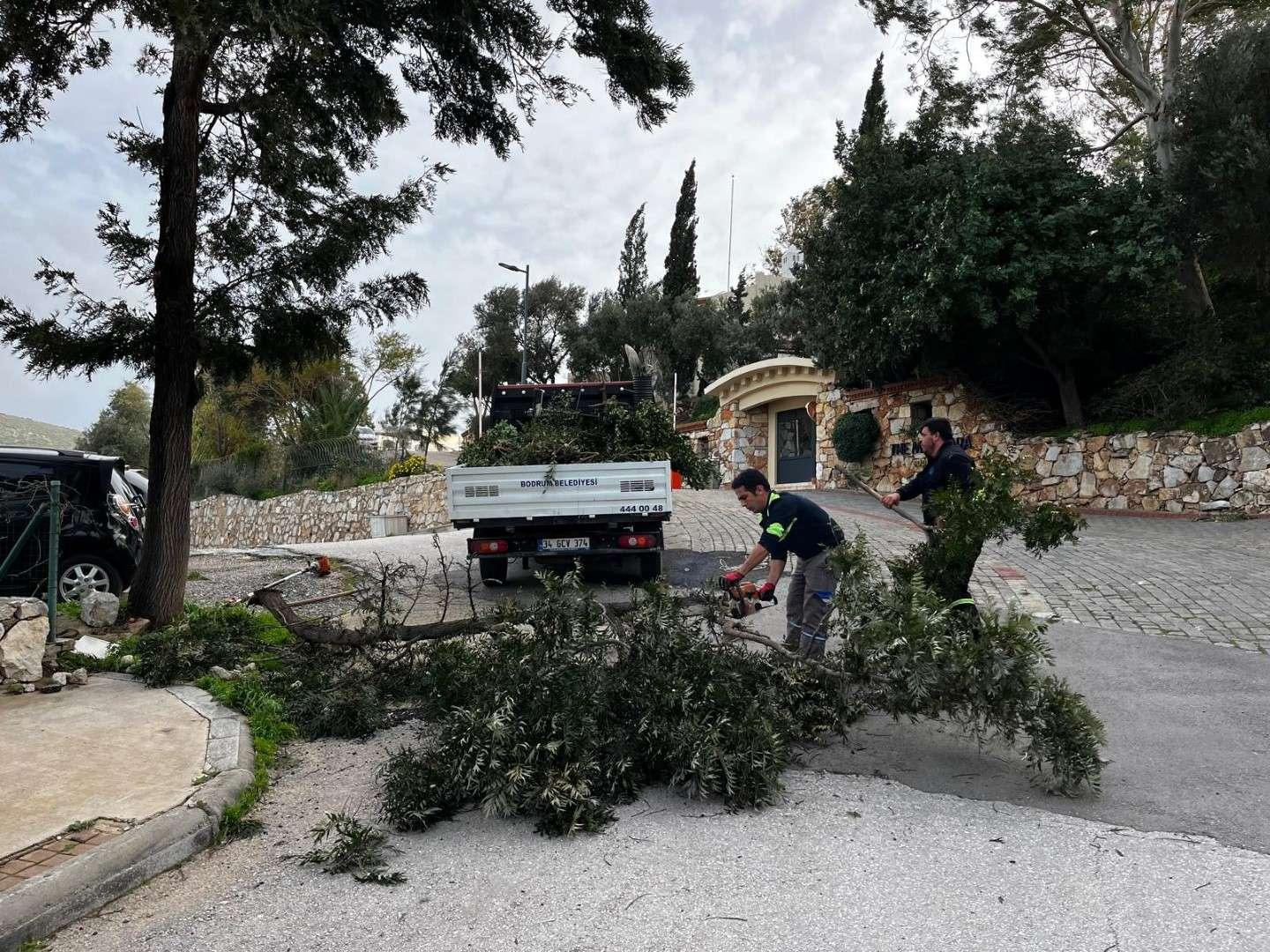 Bodrum Belediyesi Park ve Bahçeler Müdürlüğü ekipleri, dün sabah saatlerinde başlayıp gece saatlerine kadar etkili olan lodos fırtınasında 13 ekip, 57 personel ve 13 araç ile sahada görev yaptı.