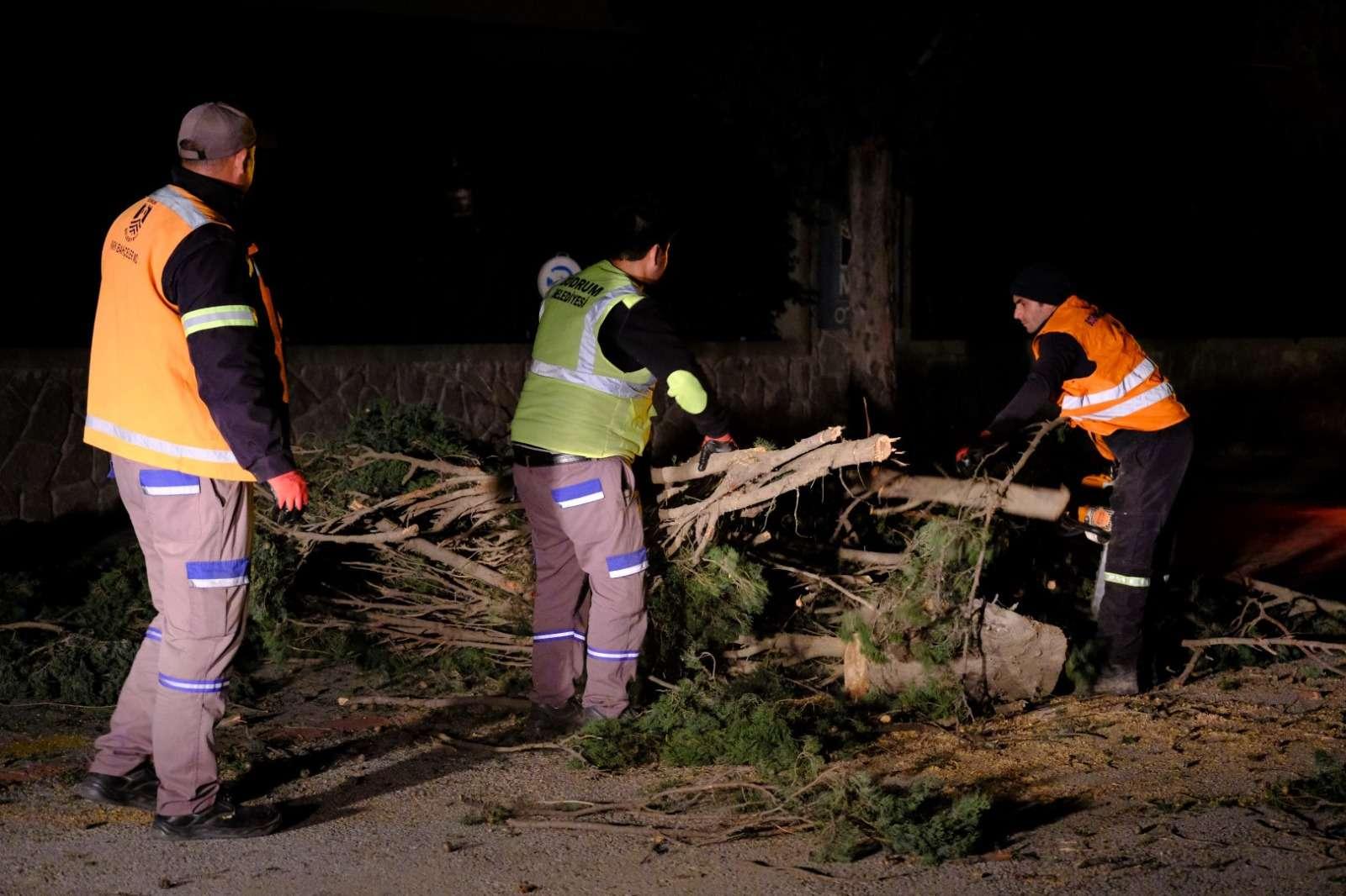 Kent genelinde etkisini gösteren fırtına nedeniyle gelen ihbarları anında değerlendiren belediye ekipleri, aynı anda çok sayıda ağacın devrilmesi üzerine yoğun mesai harcadı. Toplam 80 olaya müdahale eden ekipler, özellikle yollara devrilen ağaçları kısa sürede kaldırarak ulaşımın aksamaması için çalışmalarını sürdürdü.