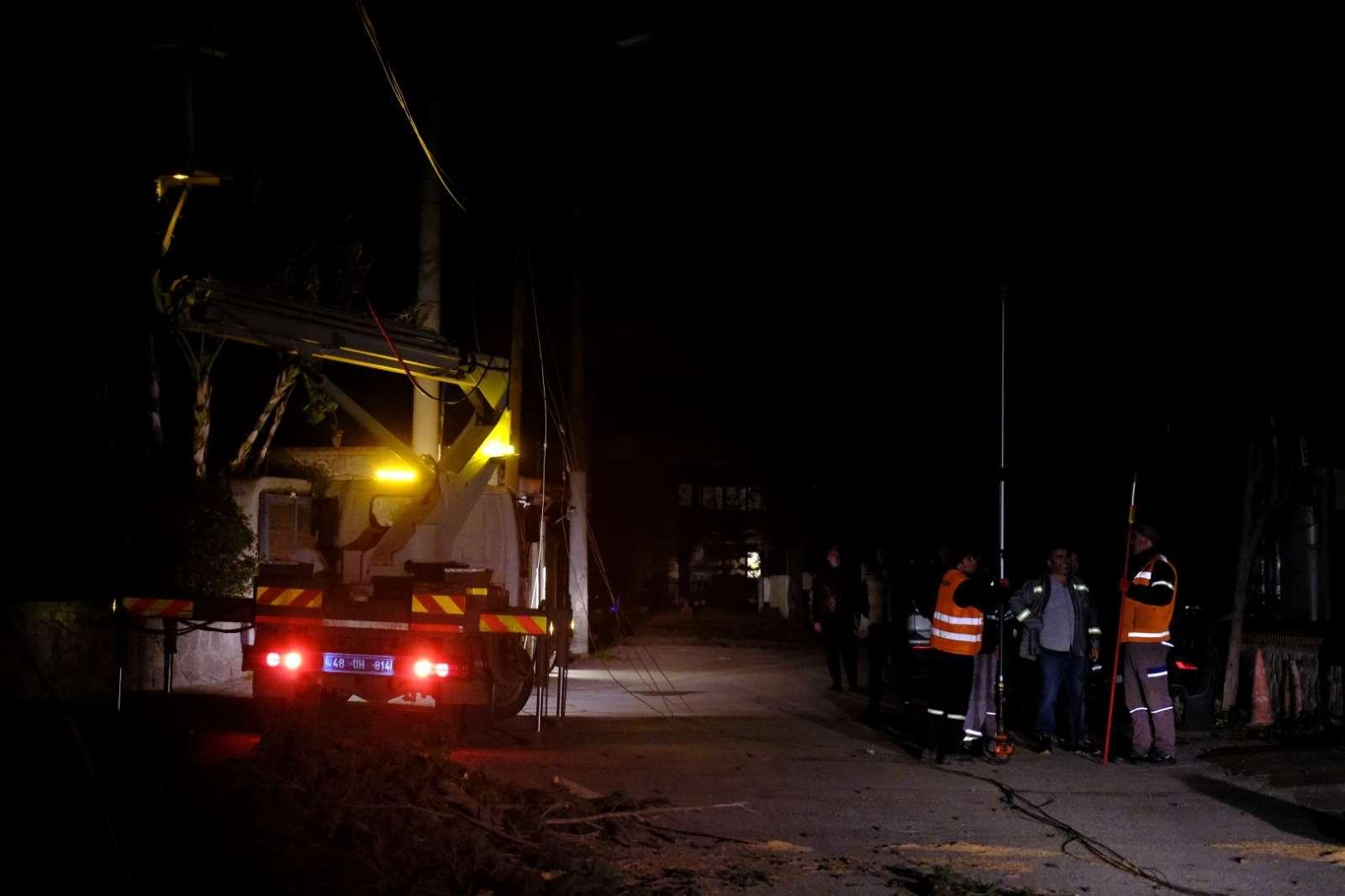 Elektrik tellerinin kopmasına ve kesintilere yol açan ağaç devrilmelerinde ekipler, AYDEM ekipleriyle koordineli şekilde çalıştı.