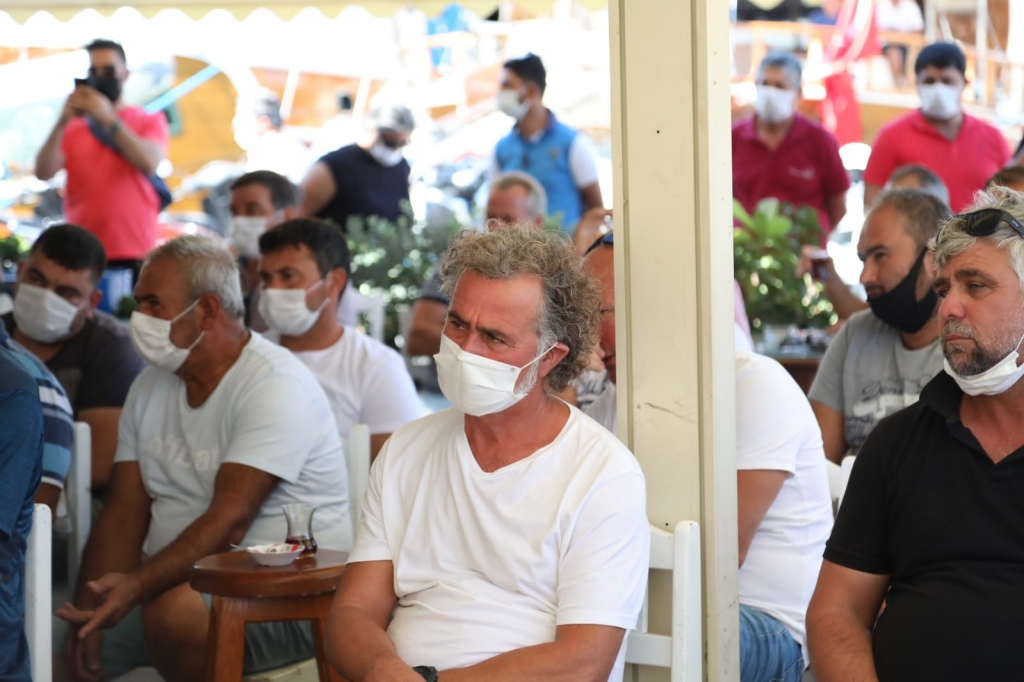 Konuşmaların ardından denizcilerin sorunlarını dinleyen Başkan Aras, İçmeler bölgesinde en az 150 teknelik bir bağlama limanının yapımı içinde çalışmalar başladıklarını sözlerine ekledi.