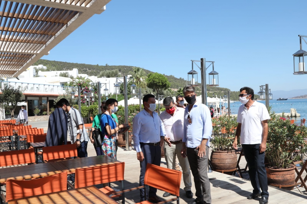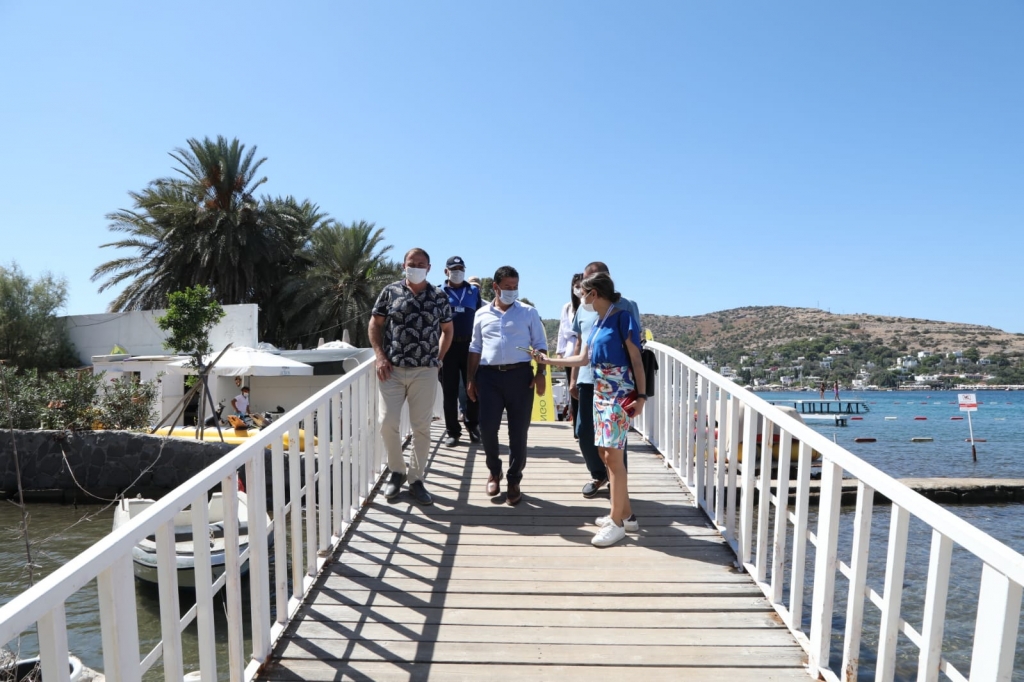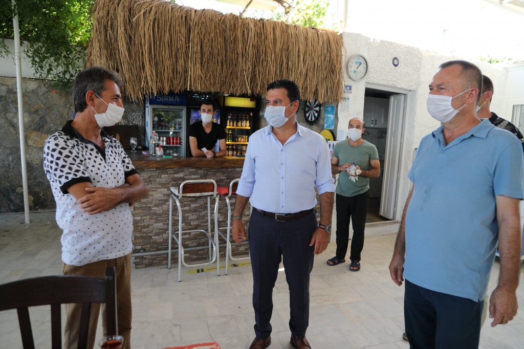 Bodrum Belediye Başkanı, Gölköy sahilinde bulunan işletmelere tek tek uğrayarak, işletme sahipleriyle görüştü. Covid-19 önlemleri kapsamında da incelemelerde bulunan Başkan Aras ve beraberindekiler, kurallara uygun şekilde vatandaşa hizmet veren işletmelere teşekkür etti. Tatilini Gölköy’de geçiren misafirlerle de kısa süreli sohbetler eden Ahmet Aras, bölgede yaşayan vatandaşların talep ve sorunlarını dinleyerek notlar aldı.