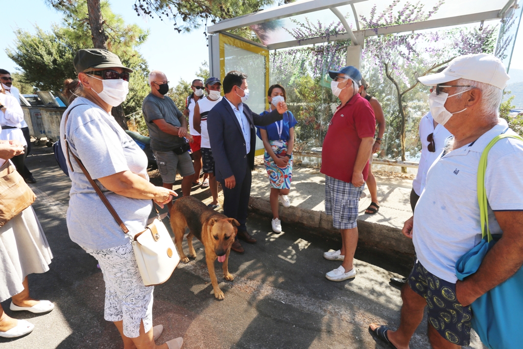 Torba Limanından Demirbükü mevkiine giden orman yolunun, İçişleri Bakanlığı'nın 07/080/2020 tarihli genelgesine göre ormanlık alanlar ve civarında ateş yakılması konusunda Bodrum ilçesi Orman Yangınları İle Mücadele Komisyonu kararı neticesinde kapatılmasıyla ilgili şikayetlerini dile getiren vatandaşları dinleyen Başkan Aras, konuyla ilgili yetkililerle konuşup ortak nokta bulma konusunda çalışacaklarını söyledi.