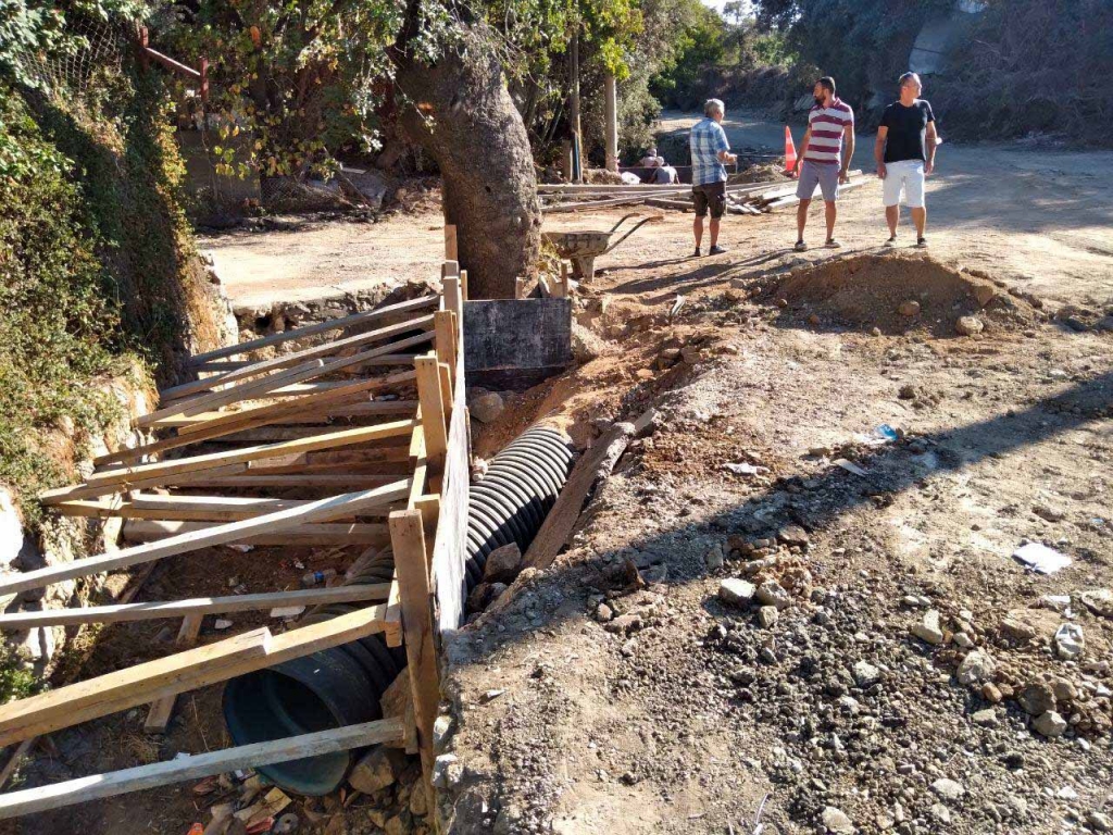 Aşırı yağış sonrası yıllardır bölgede yaşanan su taşkınlarının önüne geçmek ve yol geçişini güvenli hale getirmek için gerçekleştirilen çalışmada, yağmur kanallarının komple yenilenmesi sağlandı. Eskiyen ve yeterli gelmeyen 1 adet 400 mm’lik koruge boru yerine 3 adet 600 mm’lik koruge boru yerleştirildi. Çamur ve atıklar sebebiyle yaşanabilecek tıkanmaları engellemek için de menfez ağızlarına su setleri yapıldı. Böylece daha fazla su daha kısa sürede tasfiye edilebilecek.
