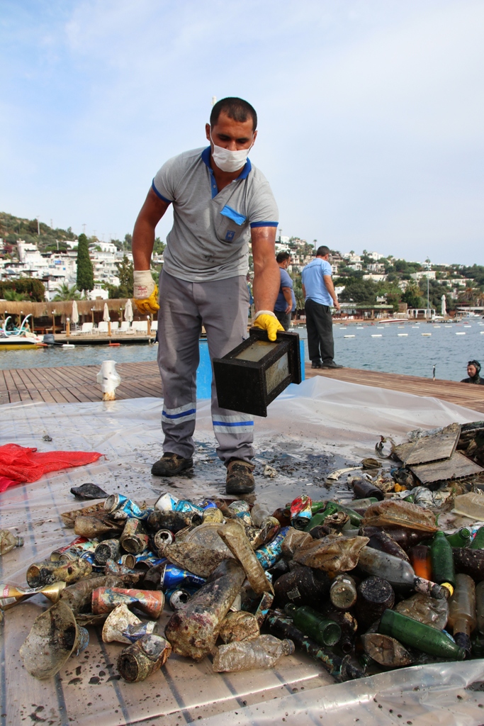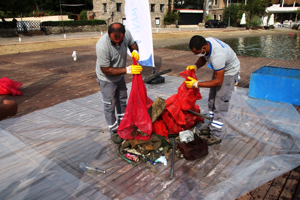 Bodrum Belediyesi Çevre Koruma Kontrol Müdürlüğü ile Temizlik İşleri Müdürlüğü tarafından koordine edilen etkinliğe katılan dalış ekibi, Türkbükü sahil kesiminde deniz dibini tertemiz yaptı. Yaklaşık iki saat boyunca devam eden etkinlikte, klozet kapağı, araç lastiği, cam, plastik ve metal şişeler ile çeşitli atıklar denizden çıkarıldı.