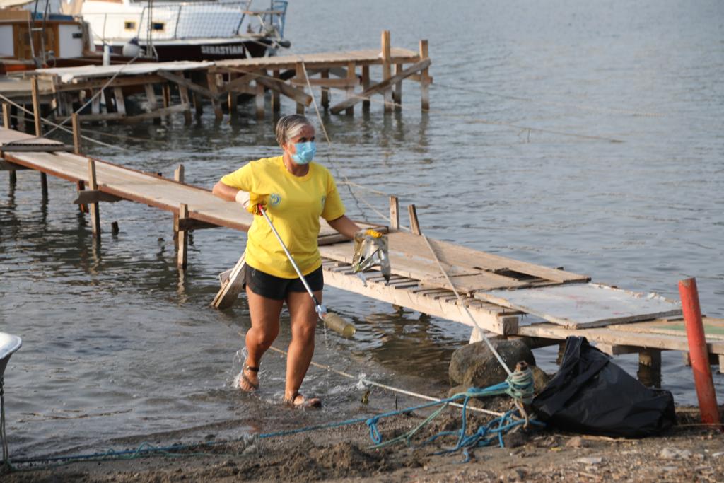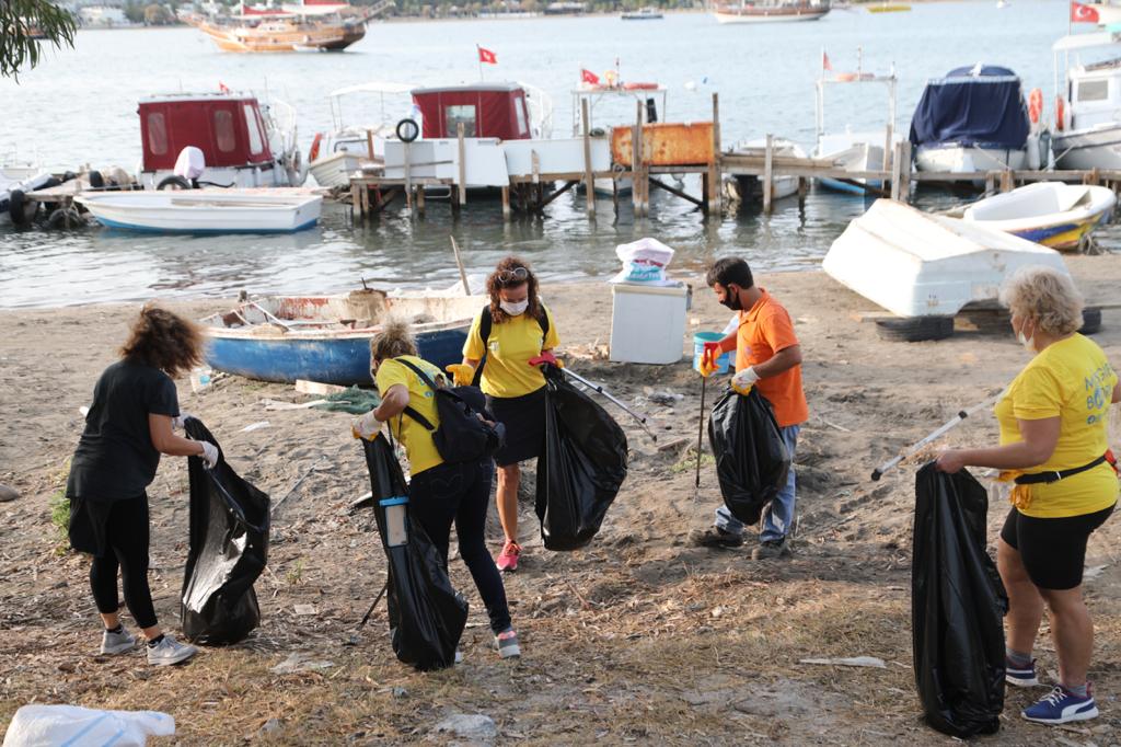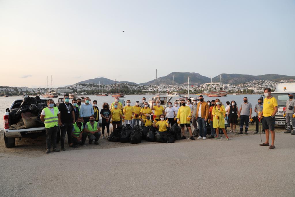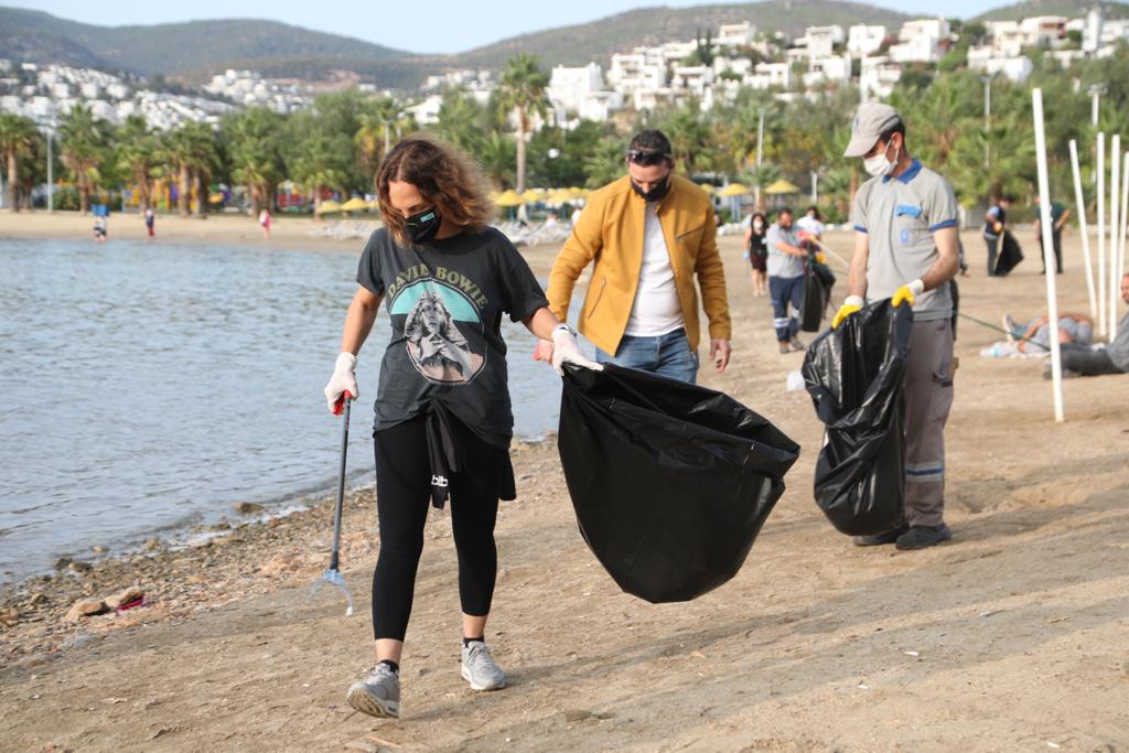 Bodrum Belediye Başkan Yardımcısı Tayfun Yılmaz, Miss Gibi 1 Bodrum Grubu üyeleri, Belediye Çevre Koruma ve Kontrol Müdürlüğü ile Temizlik İşleri ekiplerinin hazır bulunduğu etkinlikte, kıyıdan torbalar dolusu çöp toplandı.