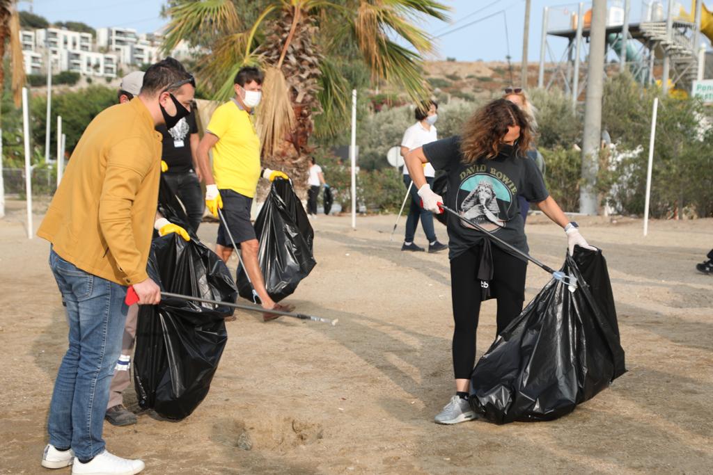 Sezon içinde Bodrum’un en çok misafir ağırladığı koylardan biri olan Gümbet’te ellerinde çöp torbaları ile temizlik yapan gönüllüler, sigara izmaritinden, pet şişelere, plastik atıklardan alkol şişelerine kadar pek çok çeşitte atık topladı.