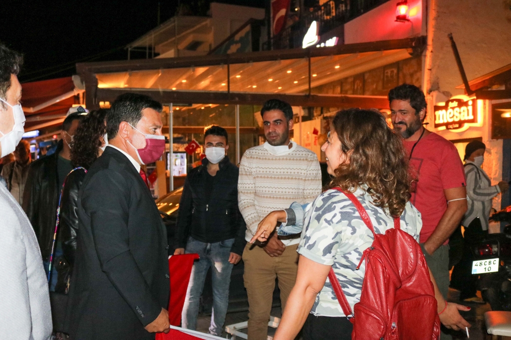 Programın hemen ardından Kumbahçe meydanına yürüyerek vatandaşların ve esnafın Cumhuriyet Bayramı’nı kutlayan Bodrum Belediye Başkanı Ahmet Aras’a Metin Uca ve İsmail Saymaz da eşlik etti.