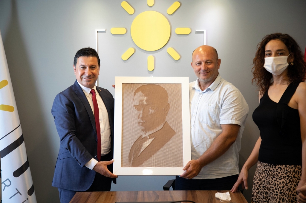 ziyaretler sonunda ilçe başkanlarına Atatürk portresi hediye etti.