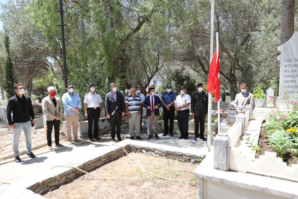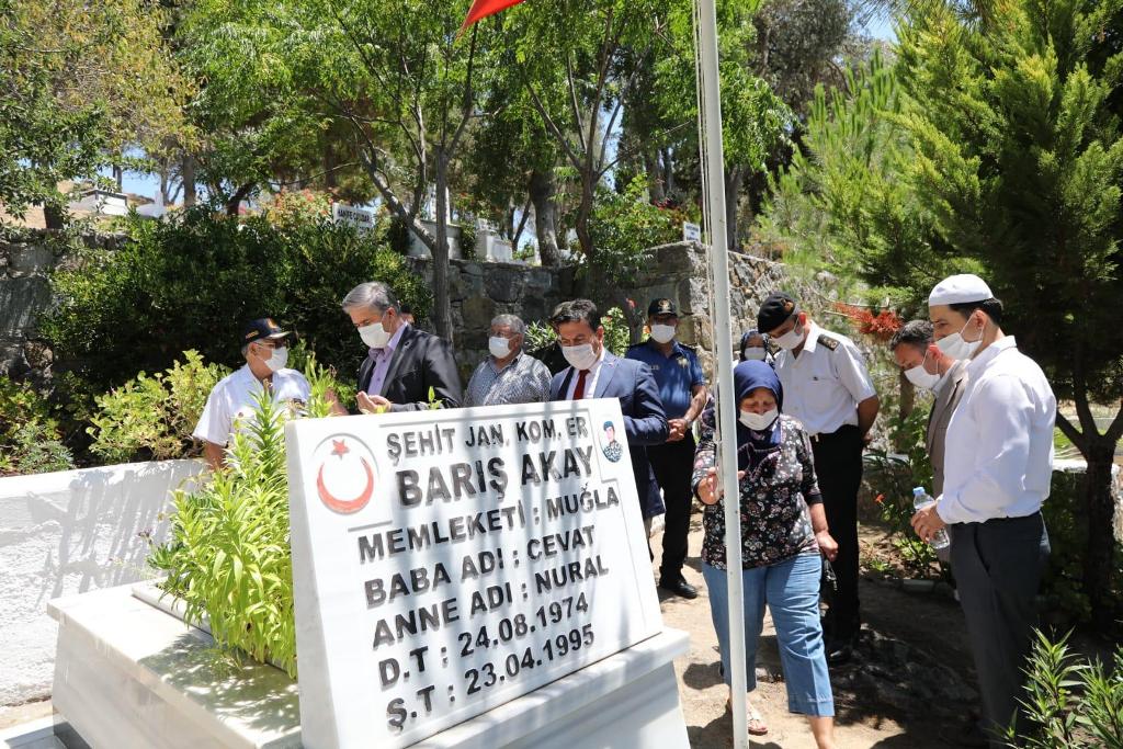 ve protokol üyeleri ile birlikte Bodrum’da şehit mezarları ziyaret edildi.