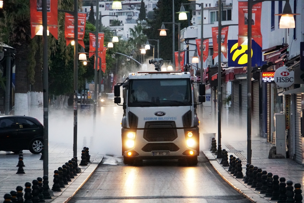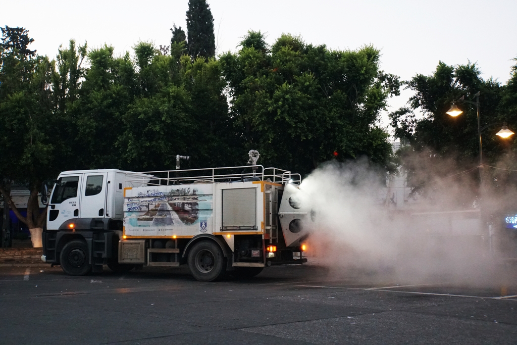 cadde, sokak ve meydanlarda dezenfektasyon çalışması yaptı.