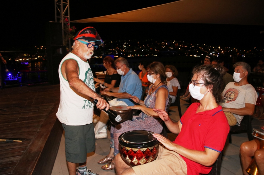 sanatçısı ve ritim ustası Okay Temiz, Bodrum'da sağlık çalışanları ile birlikte
