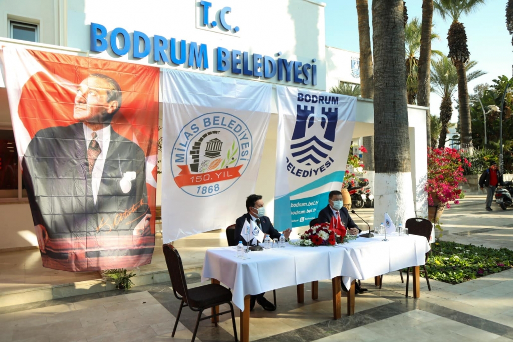 imzalandı. İmza töreni, Bodrum Belediye Başkanı Ahmet Aras ve Milas Belediye