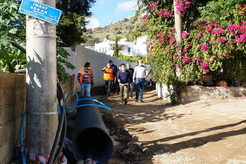 Bodrum Belediye Başkanı Ahmet Aras, başkan yardımcıları Önder Batmaz ve Turgay Kaya ile birlikte bu kapsamda yürütülen çalışmaların devam ettiği ve tamamlandığı bazı sokak ve caddelerde incelemelerde bulundu.