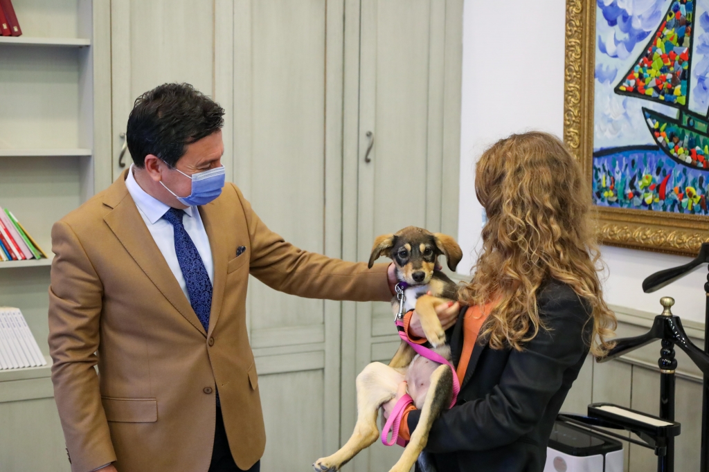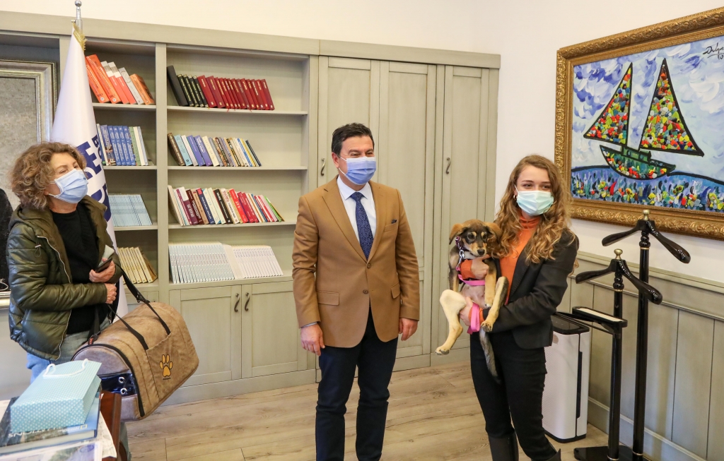 İki hafta önce Dağbelen’de yemek ve su bulamayacakları bir yerde ölüme terk edilen yavru köpekler, tesadüf sonucu hayvan severler tarafından fark edilerek Turgutreis Geçici Hayvan Bakımevi’ne getirilmişti. Geçici yuvanın bulunmasının ardından, yavru köpeklerin en küçüğü Badem, Almanya’ya sahiplendirildi. Yurtdışı çıkış işlemleri tamamlanana kadar Ankara’da misafir edilecek olan Badem, Başkan Aras tarafından akşam uçağıyla Ankara’ya götürüldü.