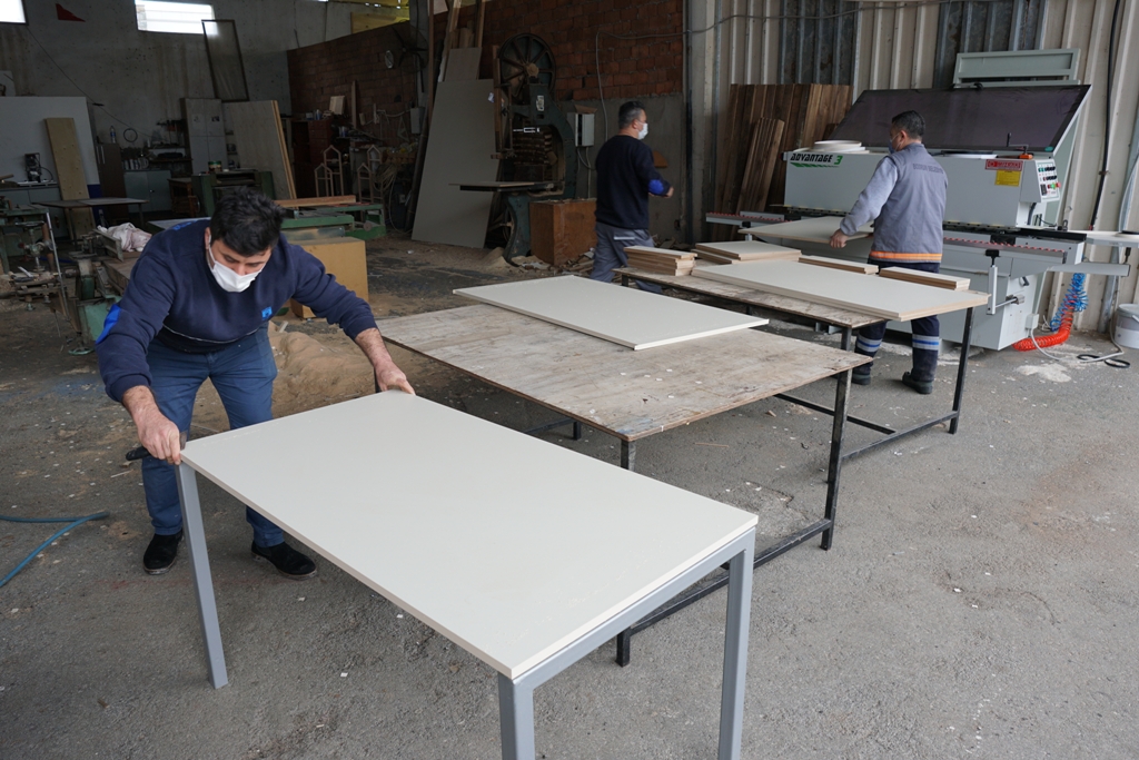 Bu kapsamda, 2020 yılı içerisinde eğitim kurumlarından gelen talepler doğrultusunda ofis masaları, sehpa, dilsiz uşak, portmanto, ahşap askılık, etejer, arşiv dolapları, kapı ve pencere yapımları, okul sıra ve masa tamiratları, pergole montajları, panolar ve çeşitli boyutlarda dolaplar üretilerek montajları yapıldı. Peyzaj düzenlemelerinde kullanılması için de 148 adet bank ve 58 adet piknik masası imalatı gerçekleştirilerek Yarımadanın çeşitli yerlerine konulurken, belediye hizmet binalarında kullanılmak üzere tek tip 60 adet ofis masası ve etejer üretildi.