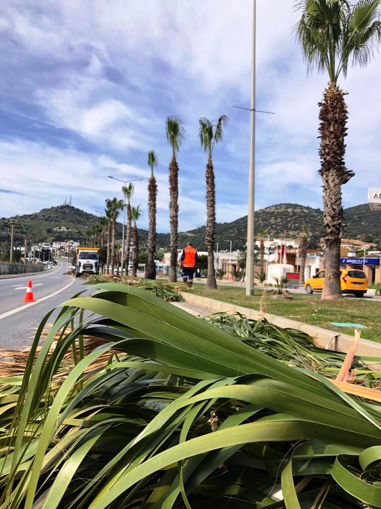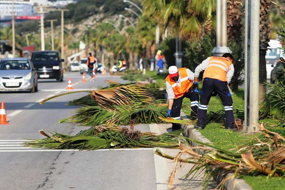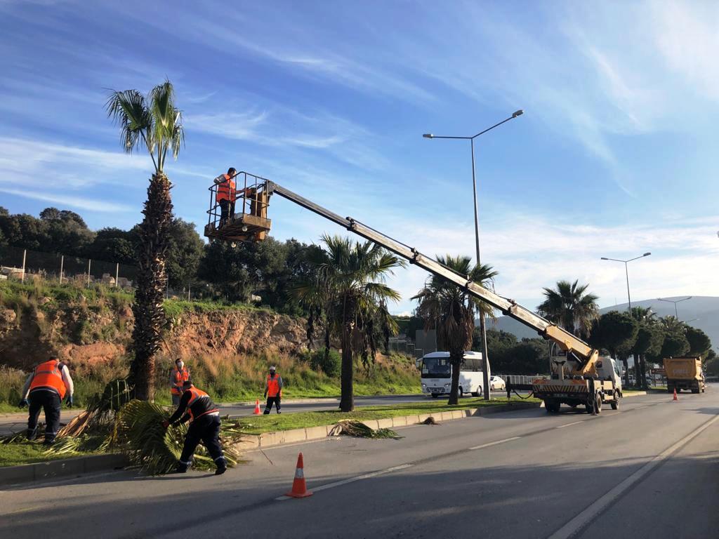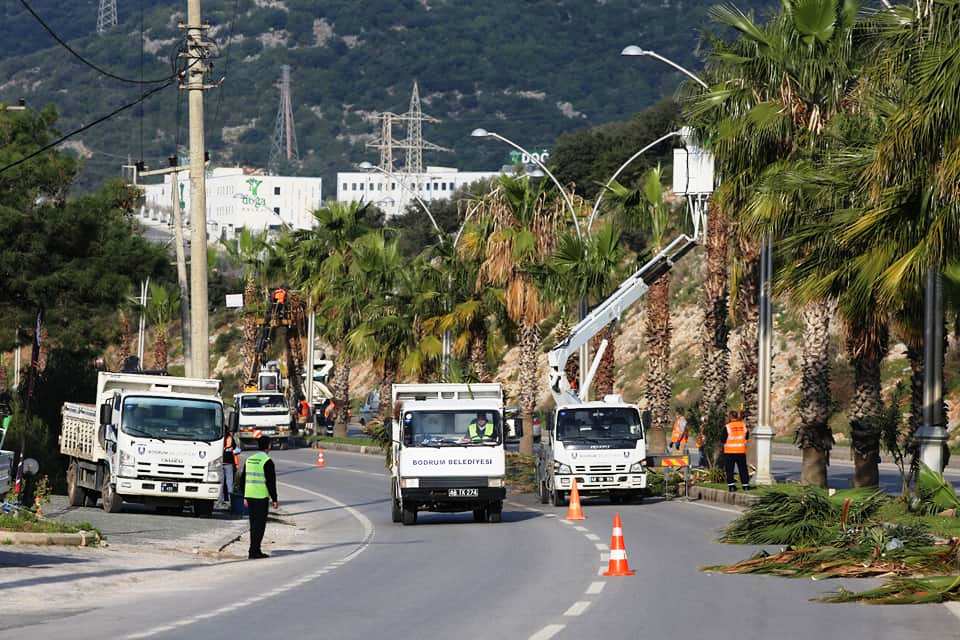 Bodrum Belediyesi Park ve Bahçeler Müdürlüğü ekipleri sokağa çıkma kısıtlamasını değerlendirerek, Müskebi Mahallesi'nden Yokuşbaşı Mahallesi'ne kadar çevre yolu üzerinde bulunan 625 adet palmiye ağacının budama işlemini gerçekleştirdi. Bin 300 adet zakkum, 150 adet çalı mine, 300 adet de yer minesi budandı. Kurumuş iki palmiye ağacının söküldüğü çalışmalar kapsamında toplamda 900 metrekare ot biçildi.