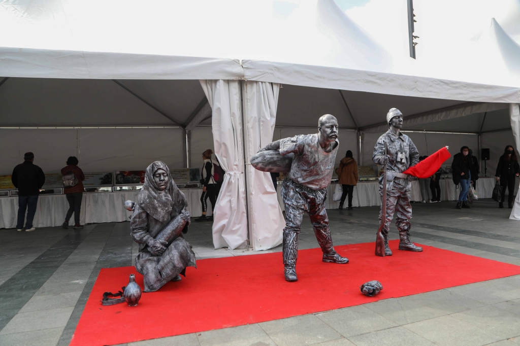 Savaş döneminden kalma mermiler, tüfekler, döneme ait eşyalar ve savaş topları, cam fanus içerisinde sergilenirken, performans sanatçıları günün belirli aralıklarında dönemin ruhunu anlatan 30 dakikalık canlı heykel gösterisi gerçekleştiriyor.