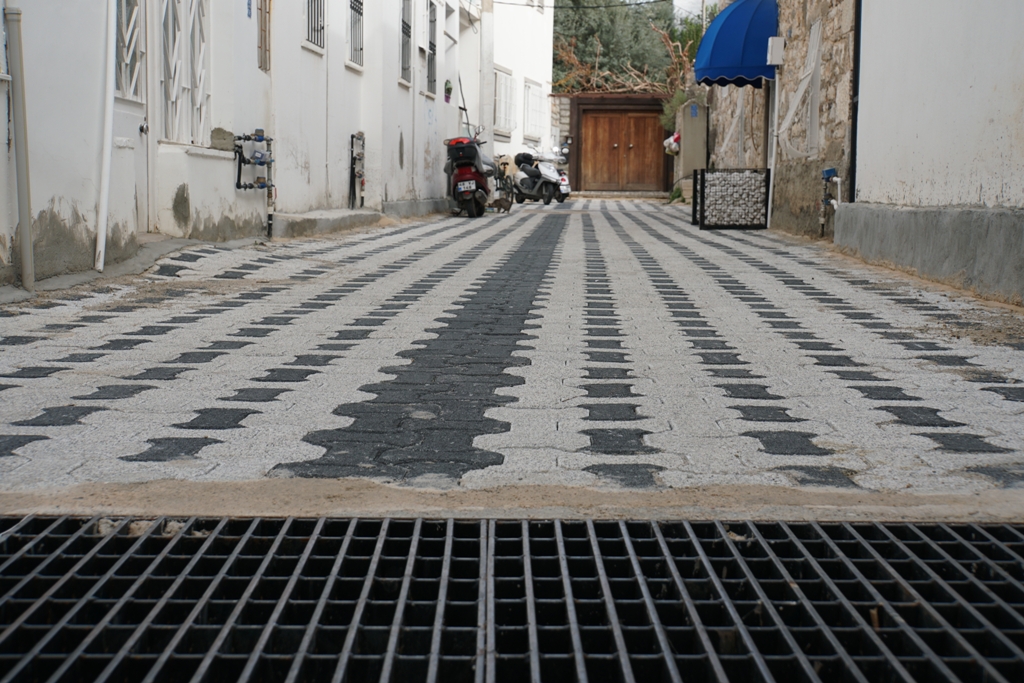 Bodrum Belediyesi Fen İşleri Müdürlüğü ekipleri ilçe genelinde, başta kronikleşen sorunlar olmak üzere belirli bir plan doğrultusunda Bodrum sokak ve caddelerini baştan yaratmaya devam ediyor. Ekipler bu kapsamda özellikle taşkın sorunlarını önlemek için başlatılan çalışmalarda son 2 yılda 14 bin 250 metre yağmur suyu hattı döşedi. Özellikle ilçe merkezinde yürütülen yağmur suyu hattı çalışmalarının ardından sokak ve caddeler yeniden ele alınarak genel olarak parke döşeniyor. Aydem ile yürütülen çalışmalar kapsamında elektrik hatlarının da yer altına alındığı cadde ve sokaklar yeni görüntüsüne kavuşuyor.