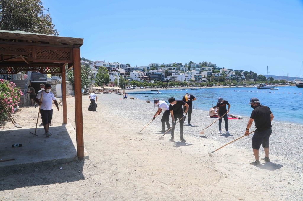 Vatandaşların plajlardan ve denizden rahatça ve konforlu bir şekilde faydalanabilmesini sağlamak için başlatılan çalışmalar, Bodrum Belediyesi Destek Hizmetleri Müdürlüğü ile Bodrum Gıda AŞ. ekipleri tarafından yürütülüyor.