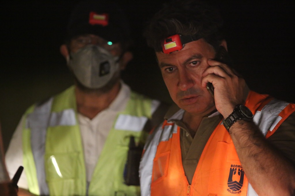 Bodrum Belediye Başkanı Ahmet Aras, yangınların 8.gününde gece gündüz demeden, bölgede yaşanan yangın söndürme çalışmalarını, belediye ekipleri ile birlikte teyakkuzda kalarak takip ediyor.