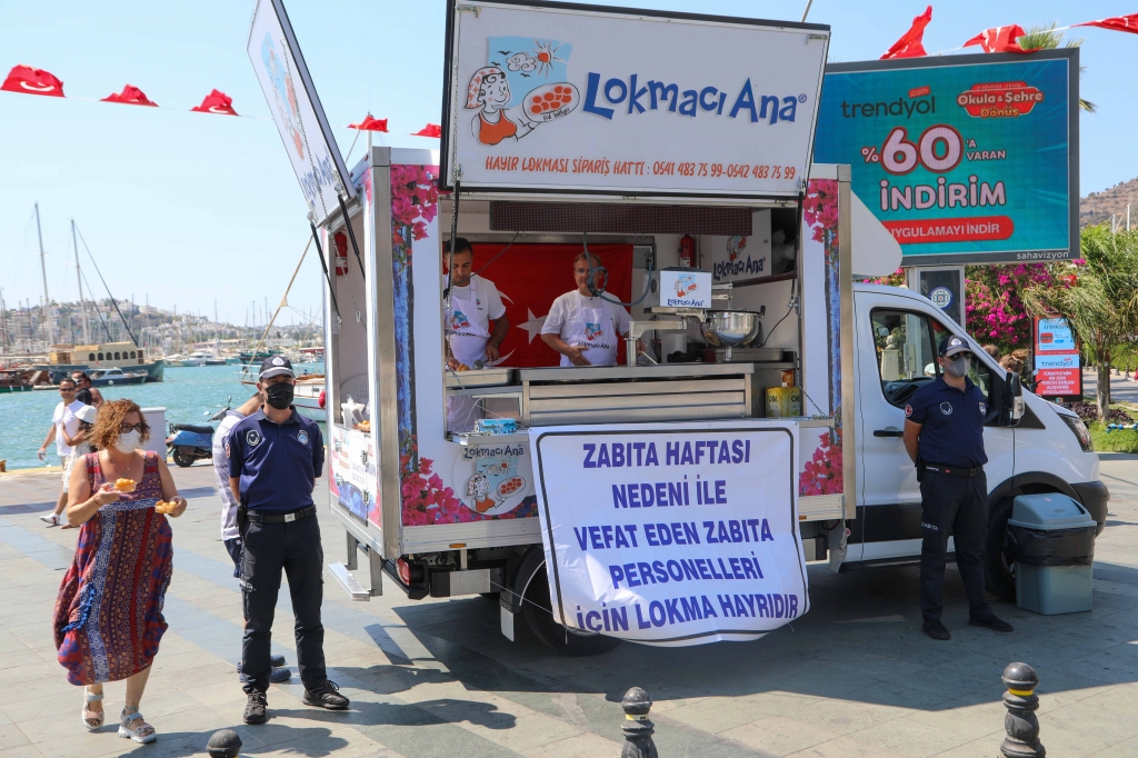 Bodrum’daki etkinlikler kapsamında dün de Bodrum Belediyesi Zabıta Müdürlüğü’nde çalışırken vefat eden personelin ailelerine ziyaret gerçekleştirilirken, görev sırasında hayatını kaybeden zabıta personelinin anısına Belediye Meydanı'nda lokma dağıtıldı.
