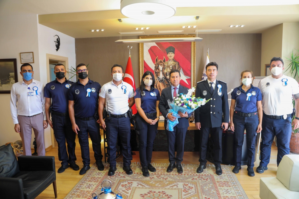 Törenin ardından Zabıta personeli Belediye Başkanı Ahmet Aras’ı makamında ziyaret etti. Yaptıkları hizmetlerden dolayı tüm zabıta personeline teşekkür eden Bodrum Belediye Başkanı Ahmet Aras, “Zabıta teşkilatımız halkımızın her zaman yardımcısıdır. Cezalandırıcı değil yardımseverdir, yol göstericidir. Zabıta teşkilatımızı daha da güçlendirerek Bodrum’a hizmet etmeye devam edeceğiz. Zabıta teşkilatının 195’inci kuruluş yıldönümünü en içten dileklerimle kutluyorum” diye konuştu.
