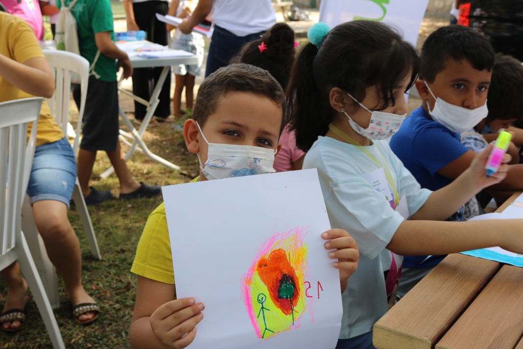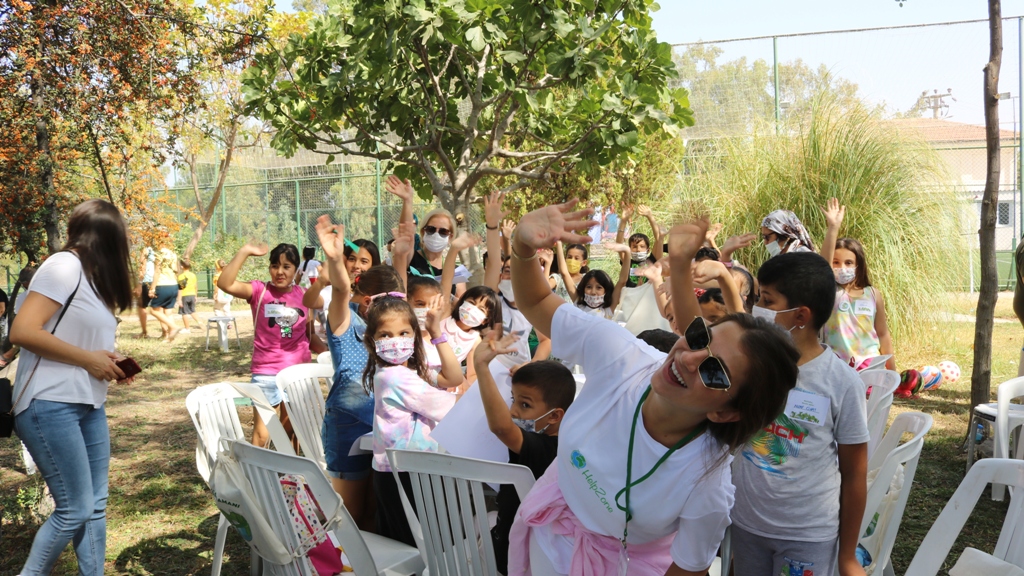 Yaş sıralamasına göre beş gruba ayrılan çocuklara resim ve boya kalemleri dağıtıldı. İklim krizi ve sebeplerinin anlatıldığı bir sinevizyon gösterisi yapıldı. Burada çocuklara eşlik eden HelpZone gönüllü öğretmenler, iklim değişikliğini, dünyaya olan etkilerini çocuklara anlatarak bu konuları resme ve yazıya dökmelerini istedi.
