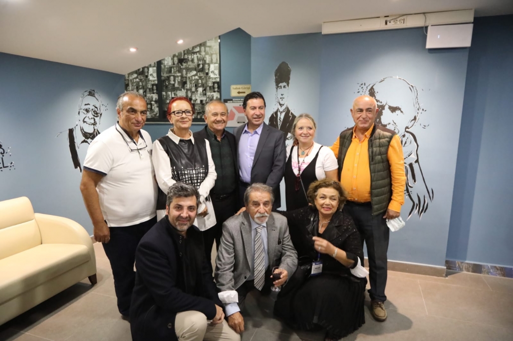 Başkan Aras, tüm şehir tiyatrosu ekibini tek tek tebrik edip, “Gerçekten muhteşem bir oyundu, arkadaşlarıma, oyuncu arkadaşlarıma tüm seyirciler adına bu çiçeği takdim etmek istiyorum” diyerek oyunun yönetmeni Filiz Çevik Tan’a çiçek takdim etti.