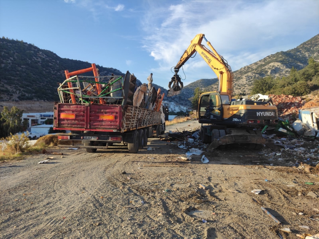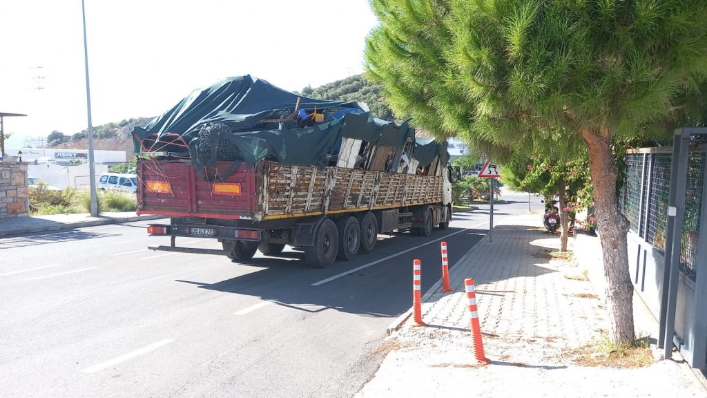 ayrıştırılarak kamyonlara yüklendi. Bodrum Belediyesi destek hizmetleri