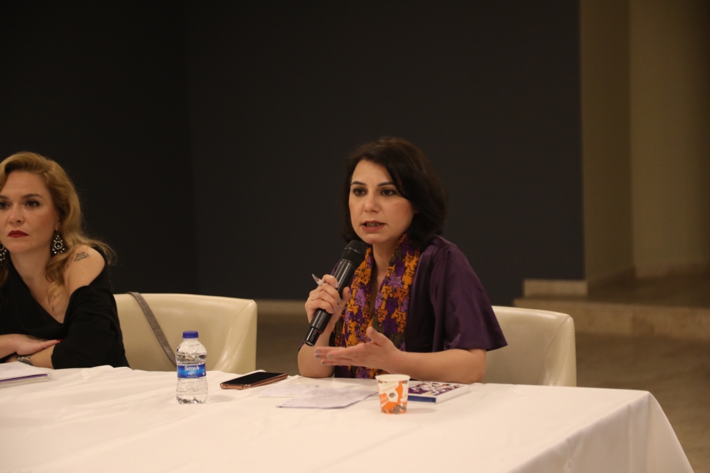 Gazeteci-Yazar Sibel Hürtaş, cezaevlerinde kadınlarla görüşerek yazdığı kitaptan örnekler vererek şiddet gören kadınların yaşadıklarını ve kendi değerlendirmelerini katılımcılarla paylaşırken, Yazar Ayşen Şahin ise kadınların iş hayatında yaşadıkları olumsuzlukları, karşı karşıya kaldıkları çeşitli şiddetleri, kariyerlerini oluşturma sürecinde karşılaştıkları zorlukları ve zorbalıkları anlatarak, kadınlara yönelik uygulanan psikolojik, fiziksel, ekonomik ve cinsel şiddetten örnekler verdi.