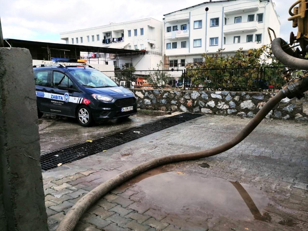 Yağış öncesinde ve yağış sırasında teyakkuzda olan Bodrum Belediyesi Fen İşleri Müdürlüğü, Temizlik Hizmetleri Müdürlüğü ile Zabıta Müdürlüğü ekipleri yağış sonrasında da Mazı ve İnce Yalı yolu üzerinde gerekli müdahalelerini tamamladı.