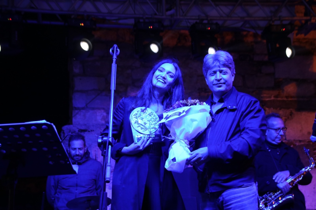 Hüseyin Tutkun sanatçılara çiçek ve plaket takdim etti.