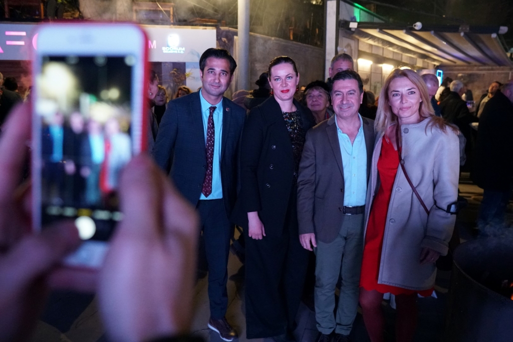 Siz de belki tatil için, belki bir sırt çantasıyla otostop çekerek Bodrum’a da gelmiş olabilirsiniz. Ama burayı sevdiniz, ailenizle beraber buraya yerleştiniz ve artık Bodrumlusunuz. Ama Bodrumlu olduğunuzda da kendi memleketlerinizin bayraklarıyla, onların renkleriyle Bodrum’u aydınlattınız; Bodrum’un ışıltısına, aydınlığına siz de çok şeyler kattınız, teşekkür ederim. Bundan sonra da yine sizlerle her zaman olduğu gibi aynı sokaklarda yaşayıp, aynı pazar yerinden alışveriş yapacağız, aynı kaygıları paylaşıp aynı sevinçte bir arada olacağız, aynı düğünde beraber kaşık sallayacağız, aynı masada yiyip içeceğiz.” dedi.