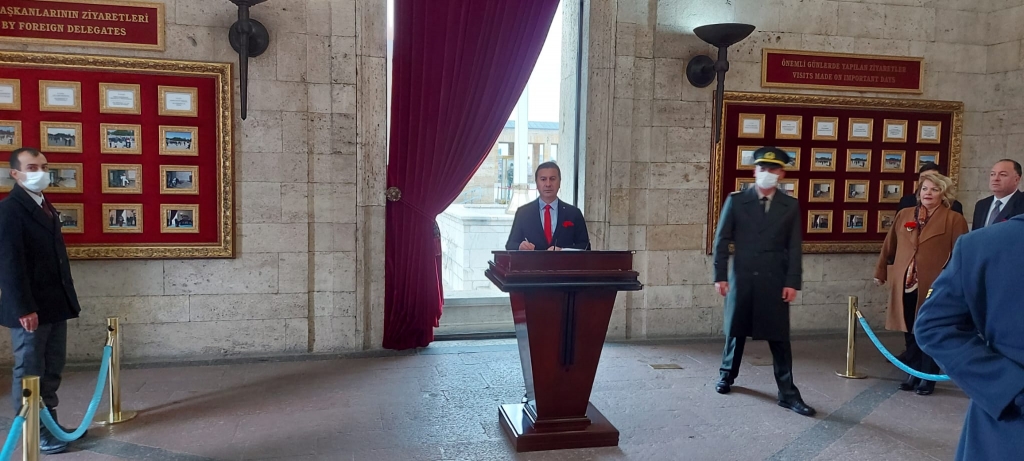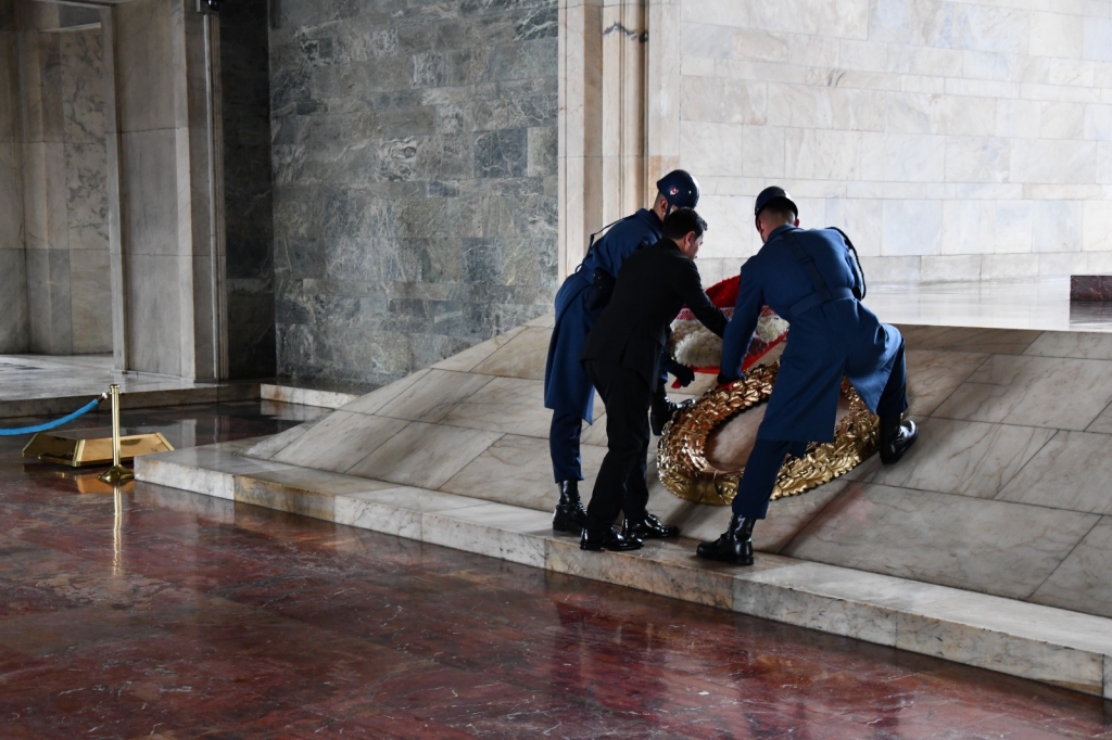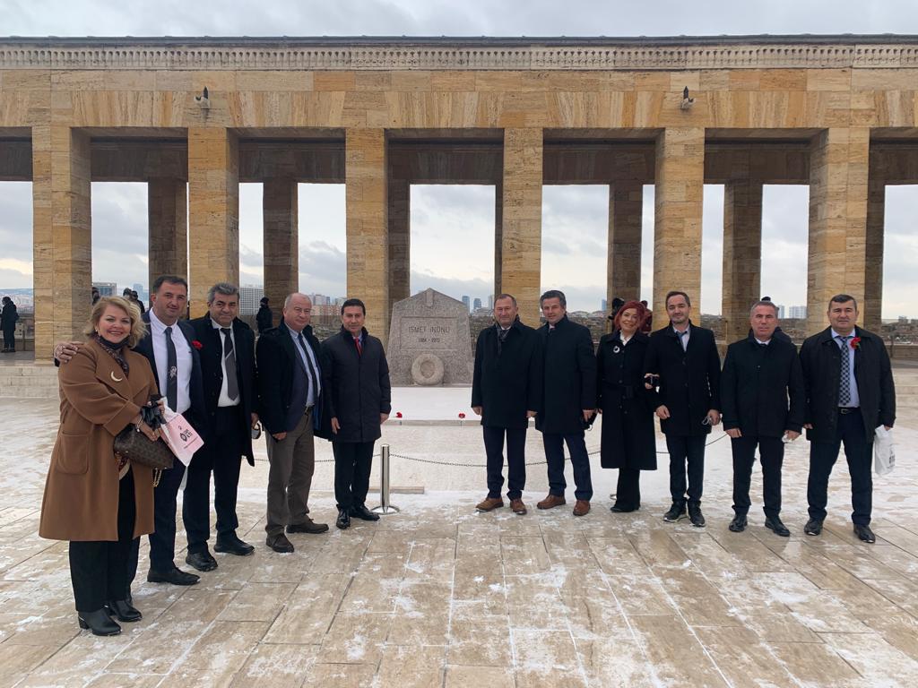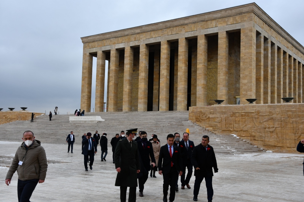Bodrum Belediye Başkanı Ahmet Aras, CHP Bodrum İlçe Başkanı Halil Karahan, İYİ Parti Bodrum İlçe Başkanı Nevzat Kanber, CHP ve İYİ Parti meclis üyeleri ile Bodrum Belediyesi Özel Kalem Müdürü Serkan Aloğlu'nun yer aldığı heyet, bir dizi ziyaretlerde bulunmak için gittikleri Ankara’da bugün ilk olarak Aslanlı Yol'dan yürüyerek Anıtkabir'de Atatürk'ün mozolesine çelenk bıraktı. Başkan Aras, ziyarette ayrıca Anıtkabir Şeref Defteri'ni imzaladı.
